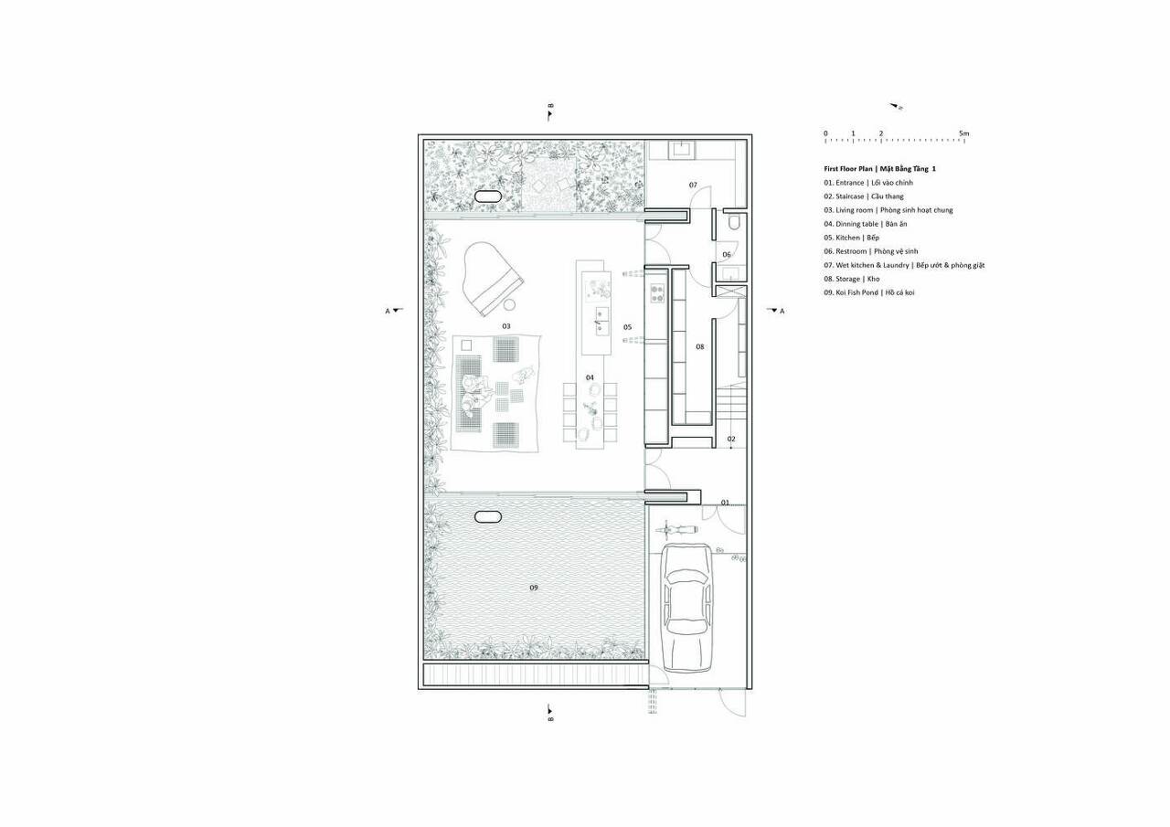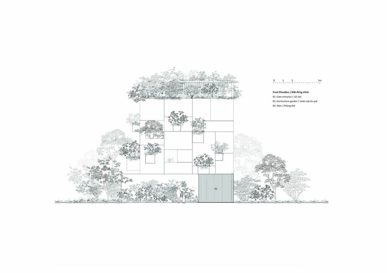 Text description provided by the architects. Saigon is a metropolitan city of Vietnam with the highest density of construction, vehicles andpopulation.With that, followed the blooming of urban infrastructure and traffic congestion. On the other hand, it causes the lack of green spaces, where people can seek tranquility and sit in harmony with nature to release stress. Being a part of this context, the construction of Sky House takes place in the middles of numerous skyscrapers built close together, which brings the feeling that Sky House is located at the floor of a valley. This presents difficulties in creating an "open" and "airy" project.