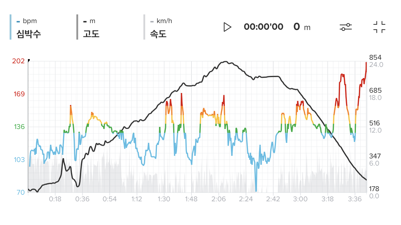 - 상승고도 : 853m(최저 180m~최고 890m)