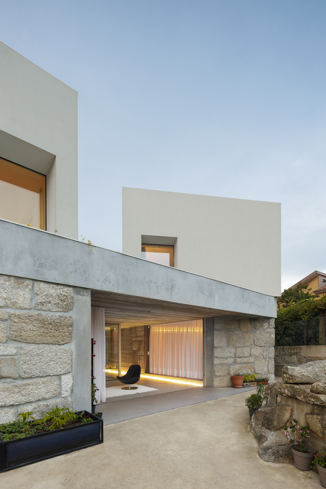 포르투갈 시골마을의 구옥을 리노베이션 프로젝트로, 기존의 시골주택은 집주인의 사용에 의해 3개의 작은집으로 구분되어 있음을 발견하여 디자인의 방향을 잡는다. 외부에서 보는 볼륨을 최대한 유지하면서 건물의 중심에 슬라브를 도려내 중정을 내어 채광을 확보하고 공간들 간의 연결이 되도록 하였다.