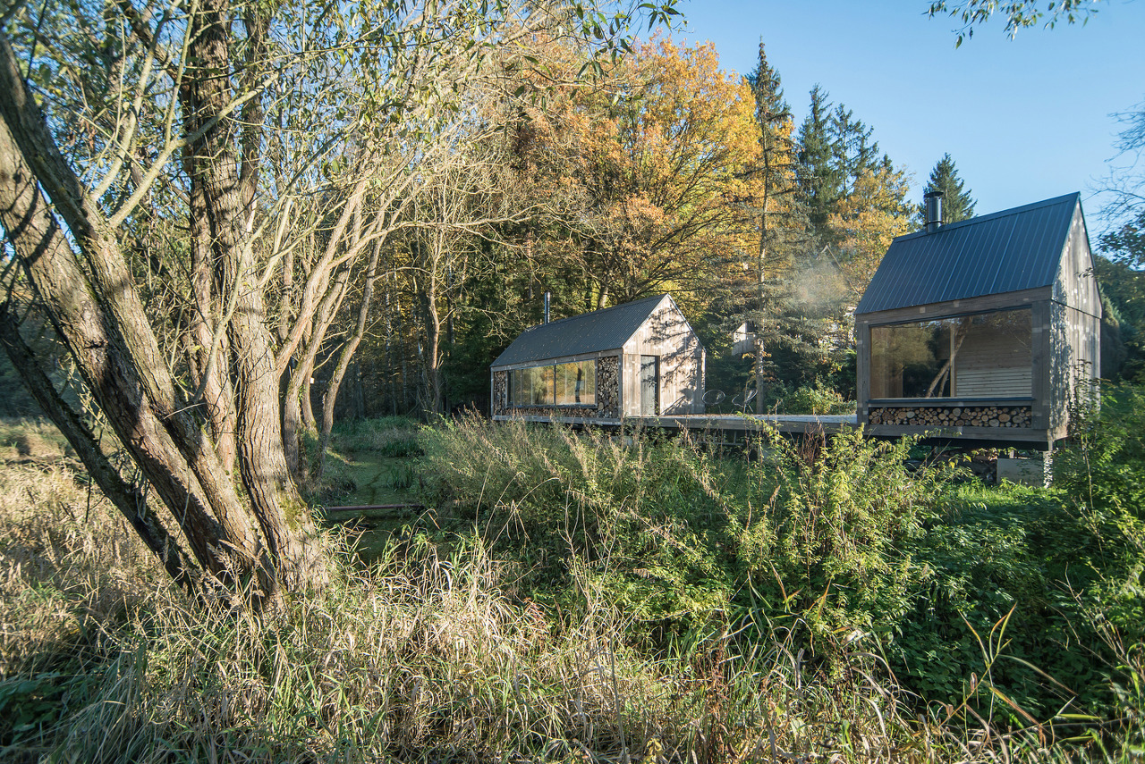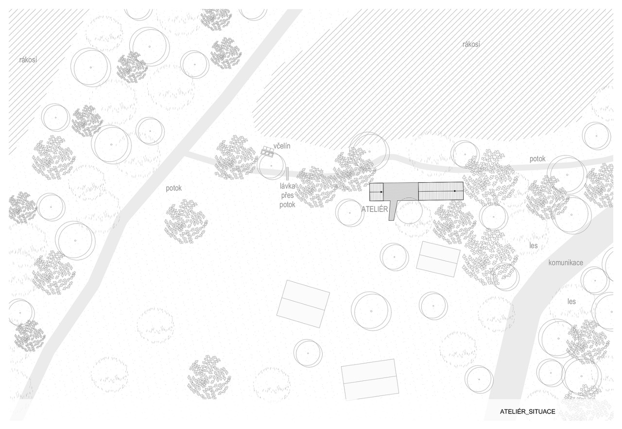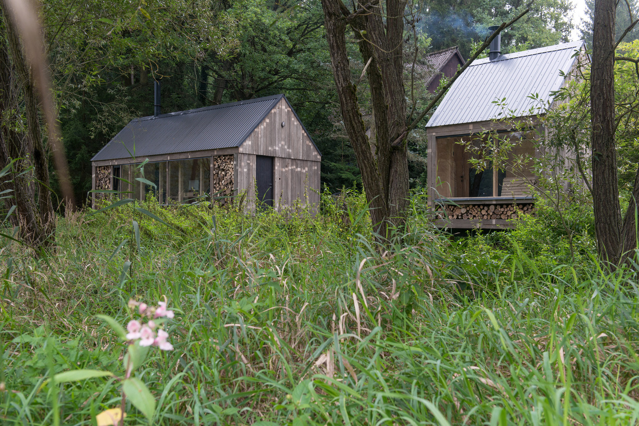 Text description provided by the architects. The building was created as an attempt to recycle materials that we had available from previous constructions and from family members who had stored them for decades - larch terrace boards, spruce facade boards, profiles for the construction of the foundations, windows, and most of the insulation materials. We were also able to borrow shroud boards, light equipment, etc., so the building was largely self-built with the help of friends and family. We wanted a three-season building that would be suitable for work, relaxation, family celebrations or as a "guest room". A building that would relate to the surrounding landscape with views across the valley from the former pond to the forest.