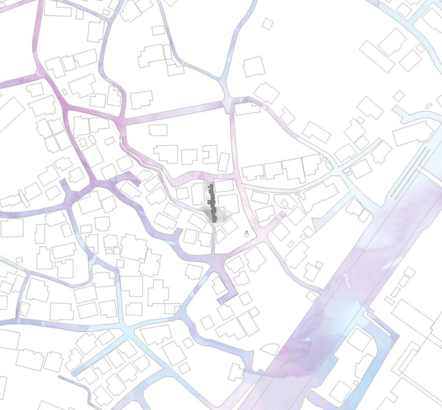 협소주택의 방식은 다양할 수 있는데, 이번 협소주택은 대지의 모양이 협소주택의 방식으로 따르지 않아도 되는데, 그렇게 한 것에 대해서 의문을 품게 되었다. 진입부는 차량두대 주차하면 가득차는 정도의 공간과 안쪽으로 들어갈 수록 주변 집들로 둘러쌓여진 조금은 넓은 대지를 가지고 있다. 진입의 폭1.8미터 남짓한 건물의 볼륨으로 길고 강한 축을 만들고 내부공간은 동쪽과 서쪽이 관통되는 홑집의 구조이다. 좁고 긴 협소주택은 방, 거실 등 단위공간으로만 연속될 수 밖에 없는 크기이며 스킵플로어 방식으로 가족간의 적당한 거리감과 이웃대지와의 입체적 관계를 만들어 내고 있다. 창의 방향은 이웃의 집과 간섭이 없도록 측면 창과 고창을 주로 사용하고 있으며 도시의 새로운 풍경을 만들어 내고 있다.