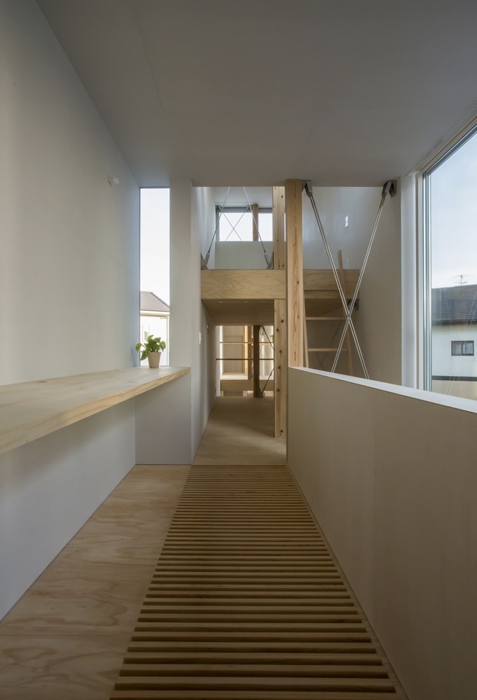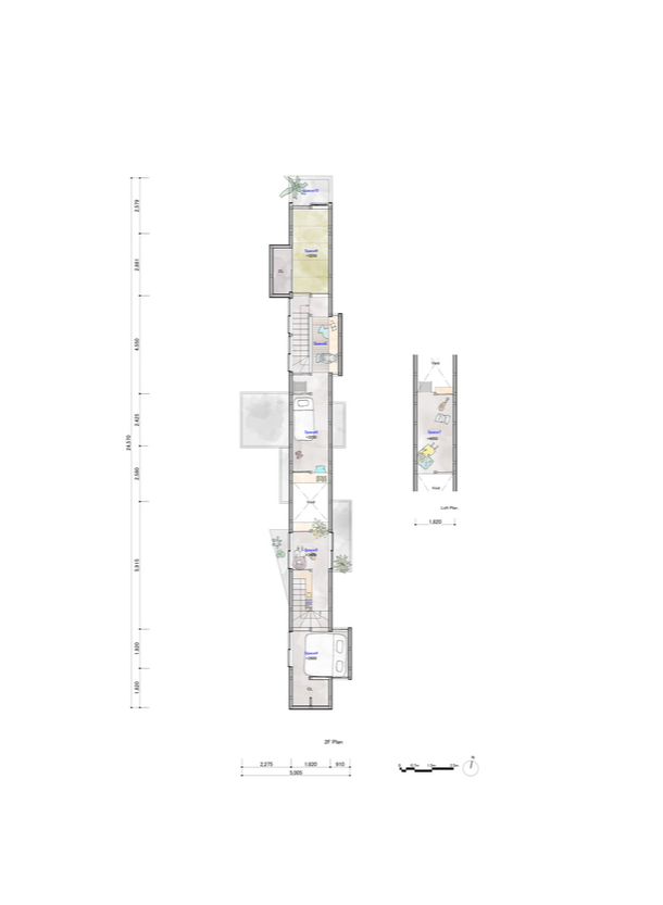▶좁고 긴 방향의 협소주택 | 스킵플로어 방식으로 단조로움을 해결한 주택