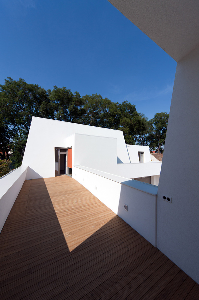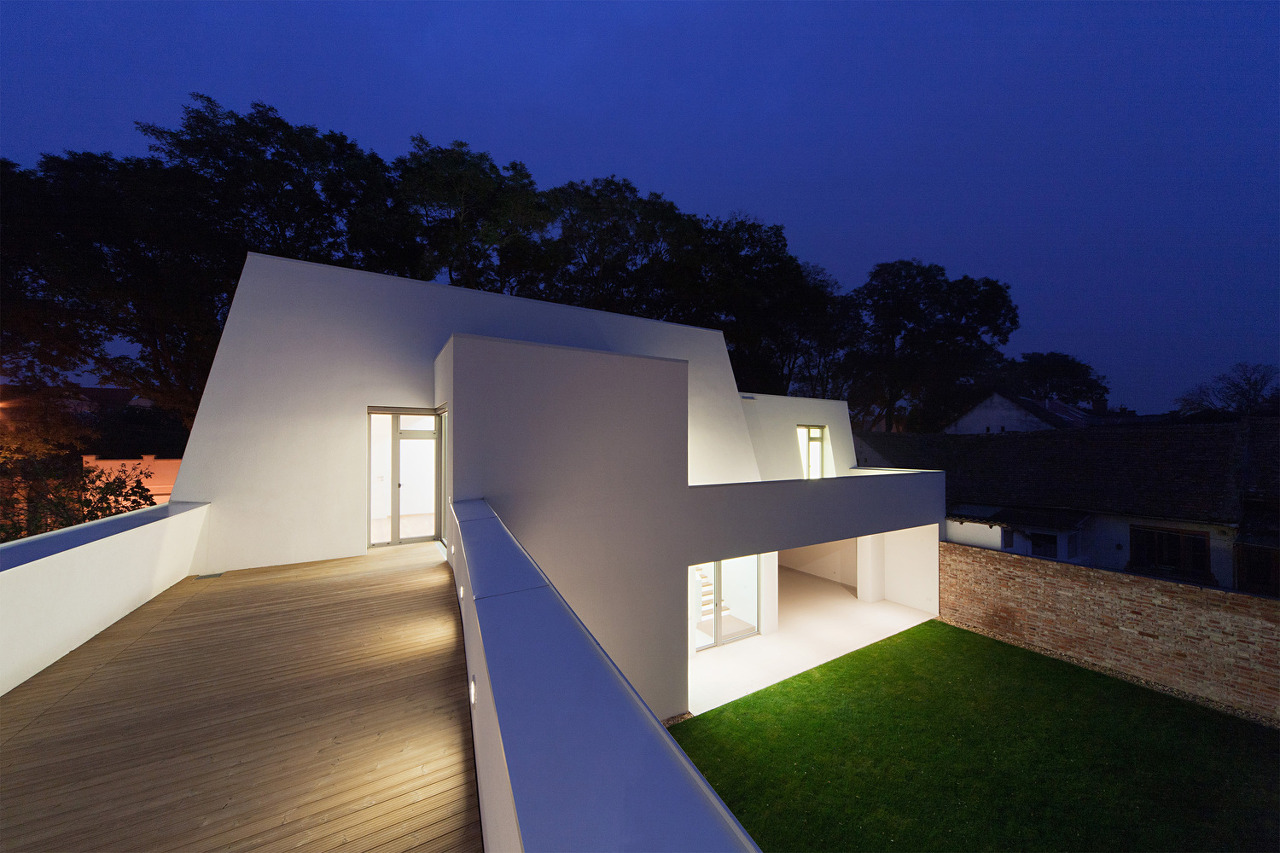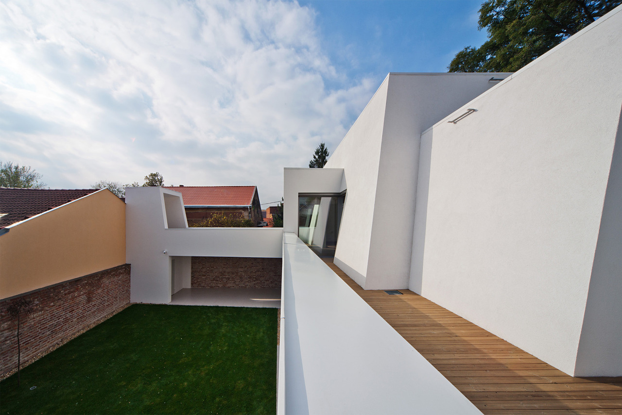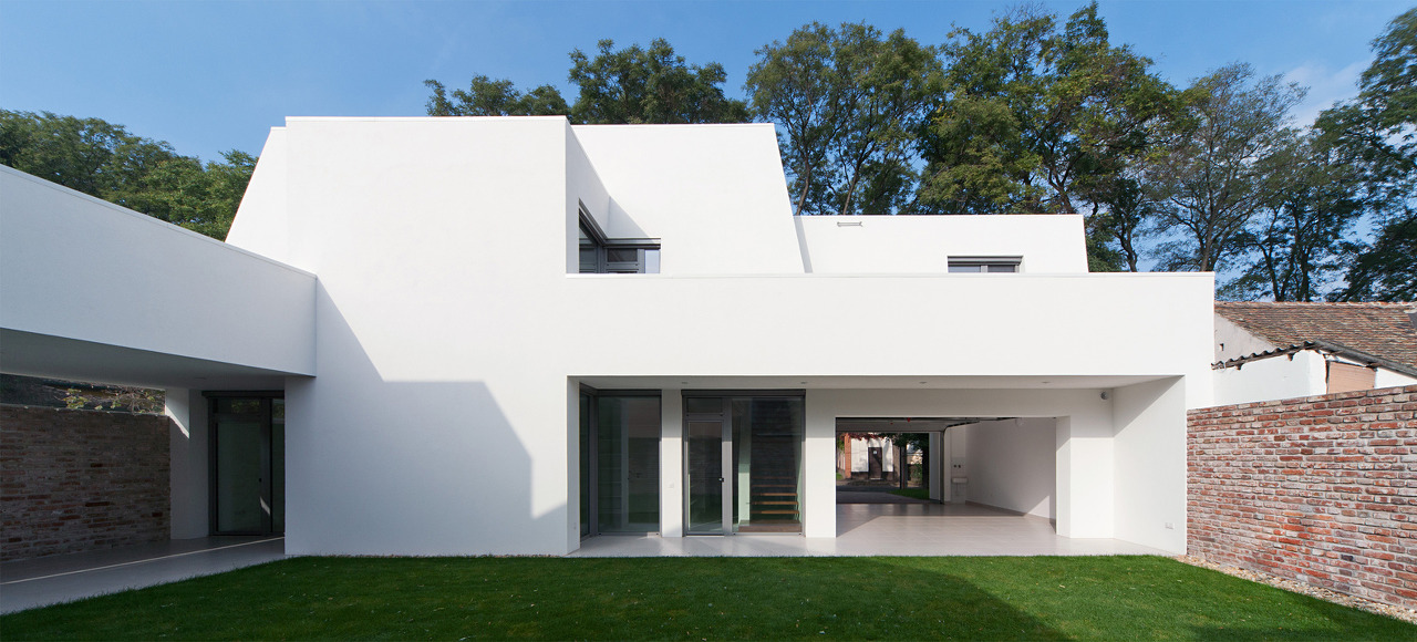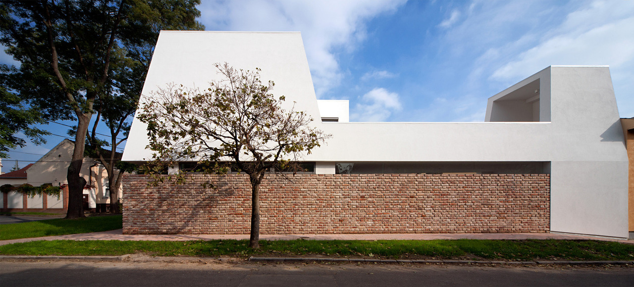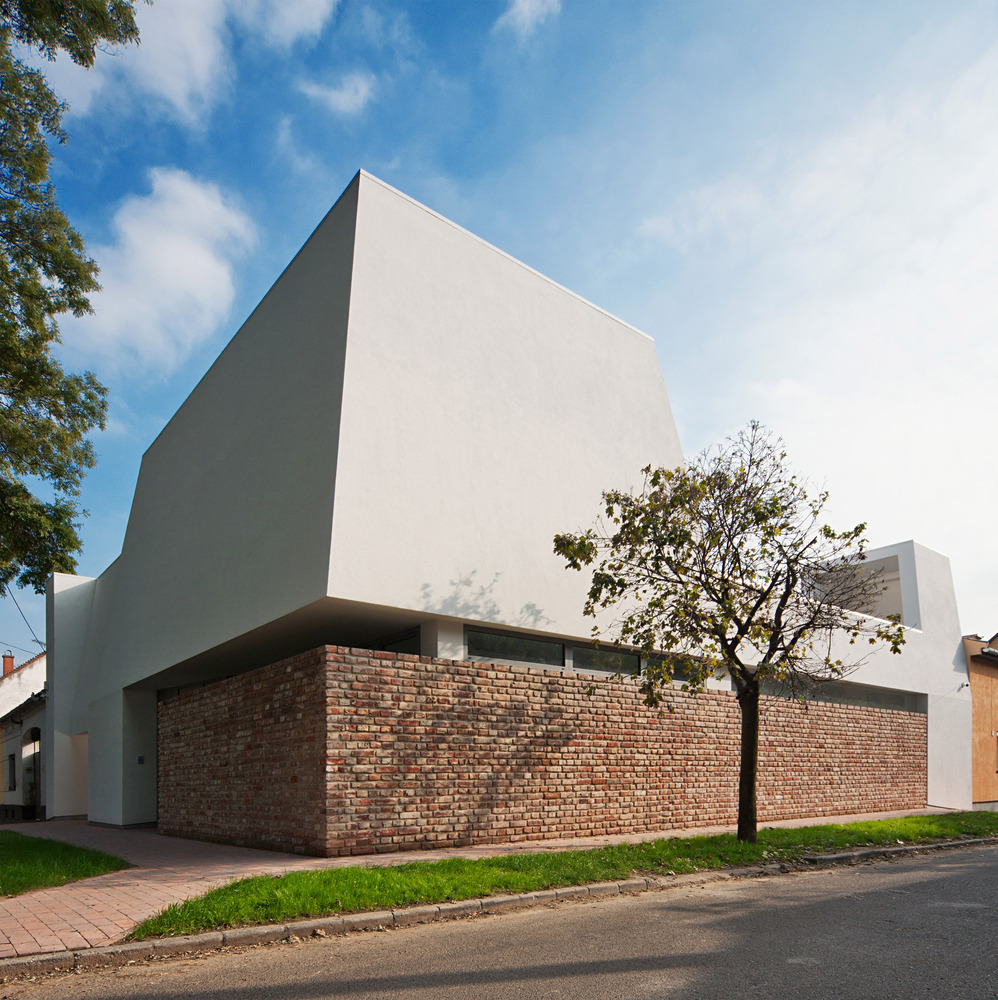 Text description provided by the architects. Actually, the latest building designed by Péter Kovács, architect from Debrecen (city in east side of Hungary, 240 km. fare from Budapest) does not quite fit into the genre detailed in the introduction as the house is not a family house but a studio. However, a parallel can still be drawn since the building is a deep, personal, self-reflexive work of art, which reflects the role of the architect, layered as it is. Such an artistic expression makes us think through many things – first of all, the atmosphere of the place. The plot can be localized both on a 1771 Debrecen map and on a map from a hundred years later. This is almost the oldest urban tissue of the so-called “civis city” (civis is a Latin word for “citizen”, it is also a root word for city; in Hungarian history civis cities were old country-towns on the Hungarian Great Plains) which remained intact and consists of barely a few streets. The impressive widening road in front of the house and the name “ötmalom” (five mills) indicate the former circle-shaped dry mills that were attached to work-horses with rods. The wide gates and inner gardens of the old houses found here still show the civil character of the country-town. Péter Kovács knows all the neighbours and their houses very well. He understands these streets. He understands the scales, the whys, the hows. He sums it all up in the following way: a strong, 2.35 m high brick fence turning into the street on the corner closes the plot's side overlooking Ötmalom Street. The presence of the fence ensures its historical identity and the unique nature of the plot. The slightly appearing bricks – there is a brick paving, too – under the weathered plaster not only show the old building material but also make one feel like travelling back in time. They refer to the old houses' few opening schemes, which differed from the architectural design of modern apartment houses: back then, mainly walls and roofs dominated. Moreover, the fence is not a part only of this plot; it is a characteristic feature of the street-line. There is another dominant feature of the scenery: the steeple of the so-called “Verestemplom” (red (brick) church) in the background, built it in 1887 (arch. Samuel Petz). The third major feature is the presence of trees. The inspiring key elements at the site are definitely the brick fence, the church steeple, and the trees.”