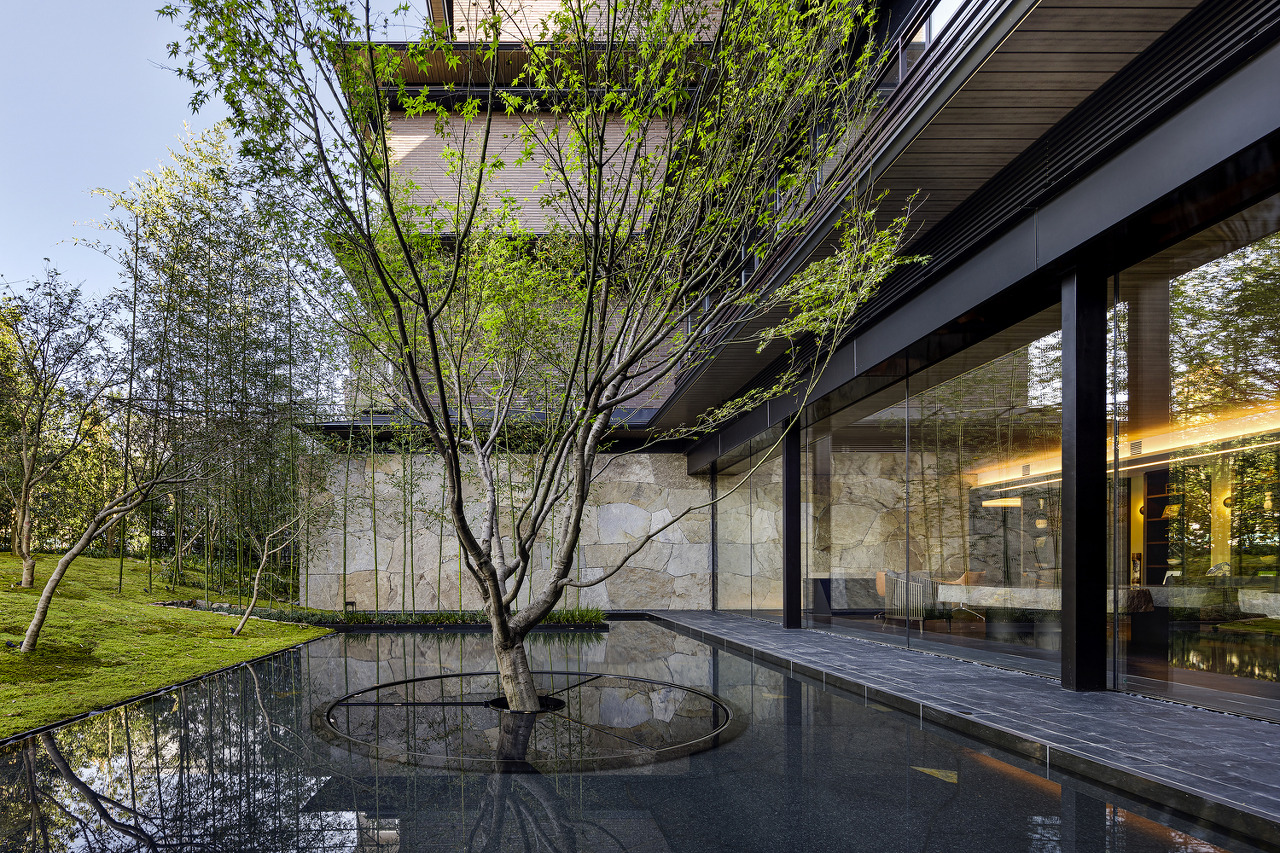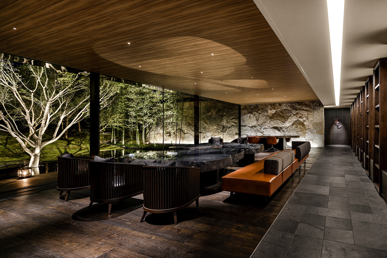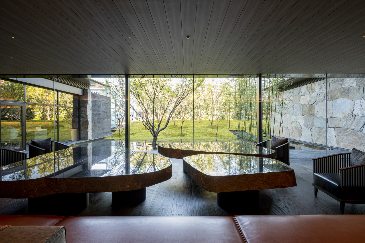 자연을 끌어들인 로비공간은 천장과 바닥에 목재를 사용하고 두꺼운 돌을 가공하여 테이블로 활용하는 등 마치 정원에 있는 요소를 실내에 사용함으로써 로비공간을 자연속에 있는 것 처럼 연출하였다. 실내와 실외의 경계라고 할 수 있는 창문은 프레임이 없는 방식으로 유리와 유리가 연속되도록 하여 공간의 경계를 흐리고 있다.