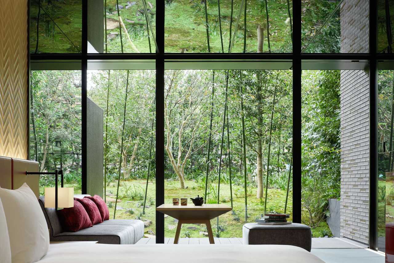 isdesigned to be reflected in the garden’s water feature andin the interiors of the lobby and guest rooms like the “sanshi-suimei*” scenery of Nijo-Jo Castle, to create subtle andprofound spaces where the interior and exterior mingle.