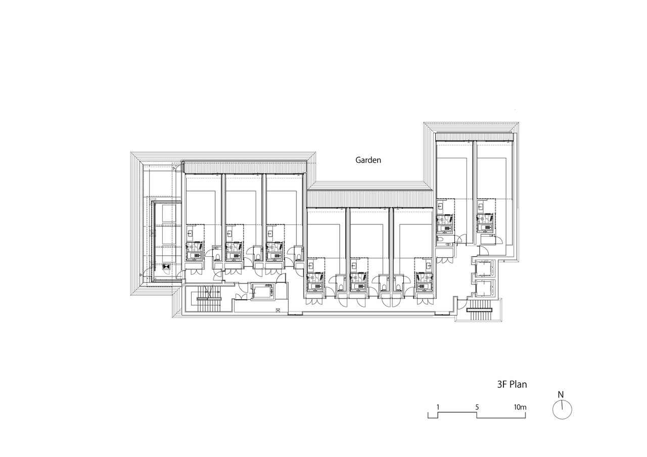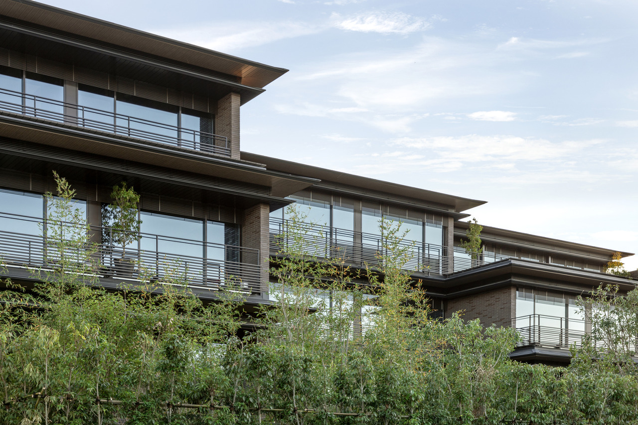 Text description provided by the architects. A 25-room luxury hotel, facing Nijo-Jo Castle in Kyoto. Insidethe “flying geese formation” shaped plan (like Nijo-JoCastle and Katsura Imperial Villa), a flow line leads from analley-like approach to an open lobby facing the garden,and on to the guest rooms, luring guests into a secludedretreat with an extraordinary vibe. The lush greenery