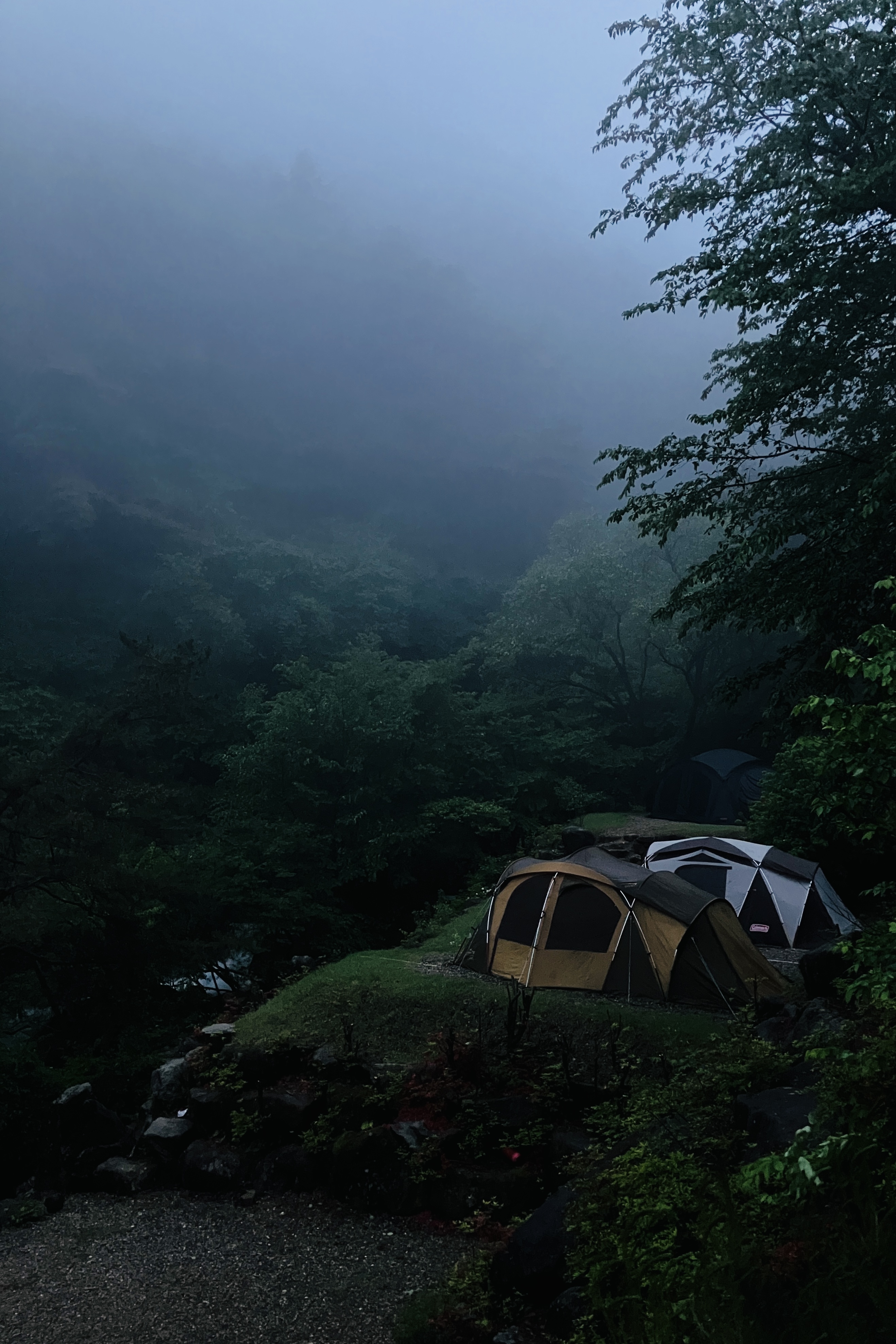 불어나는 계곡물과 어둠 속에서 존재감을 과시하는 물소리, 바람과 함께 텐트를 뒤흔드는 요란함이 담긴 영상입니다. 영상이 약간 시끄러울 수 있습니다.ㅎㅎ