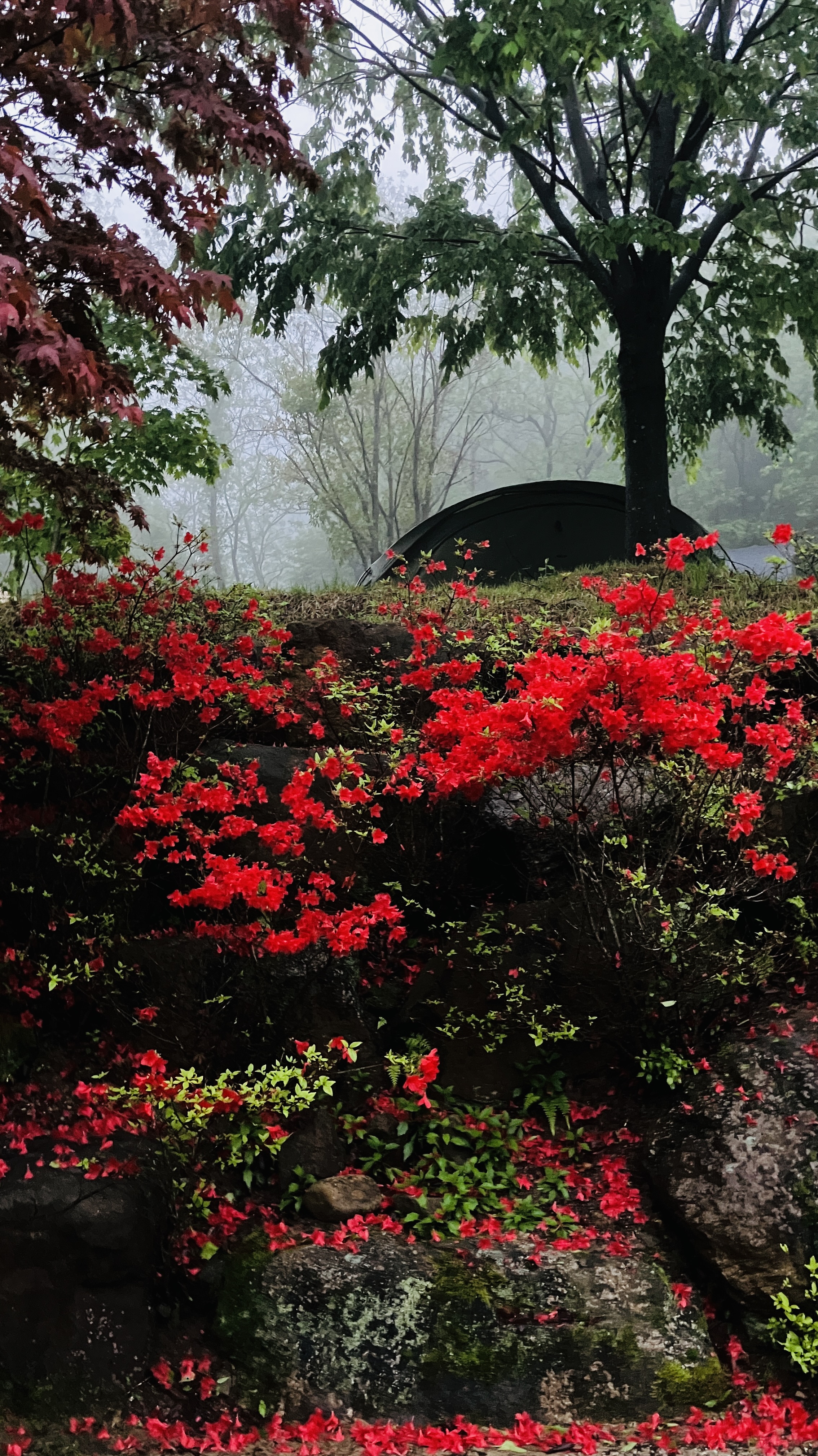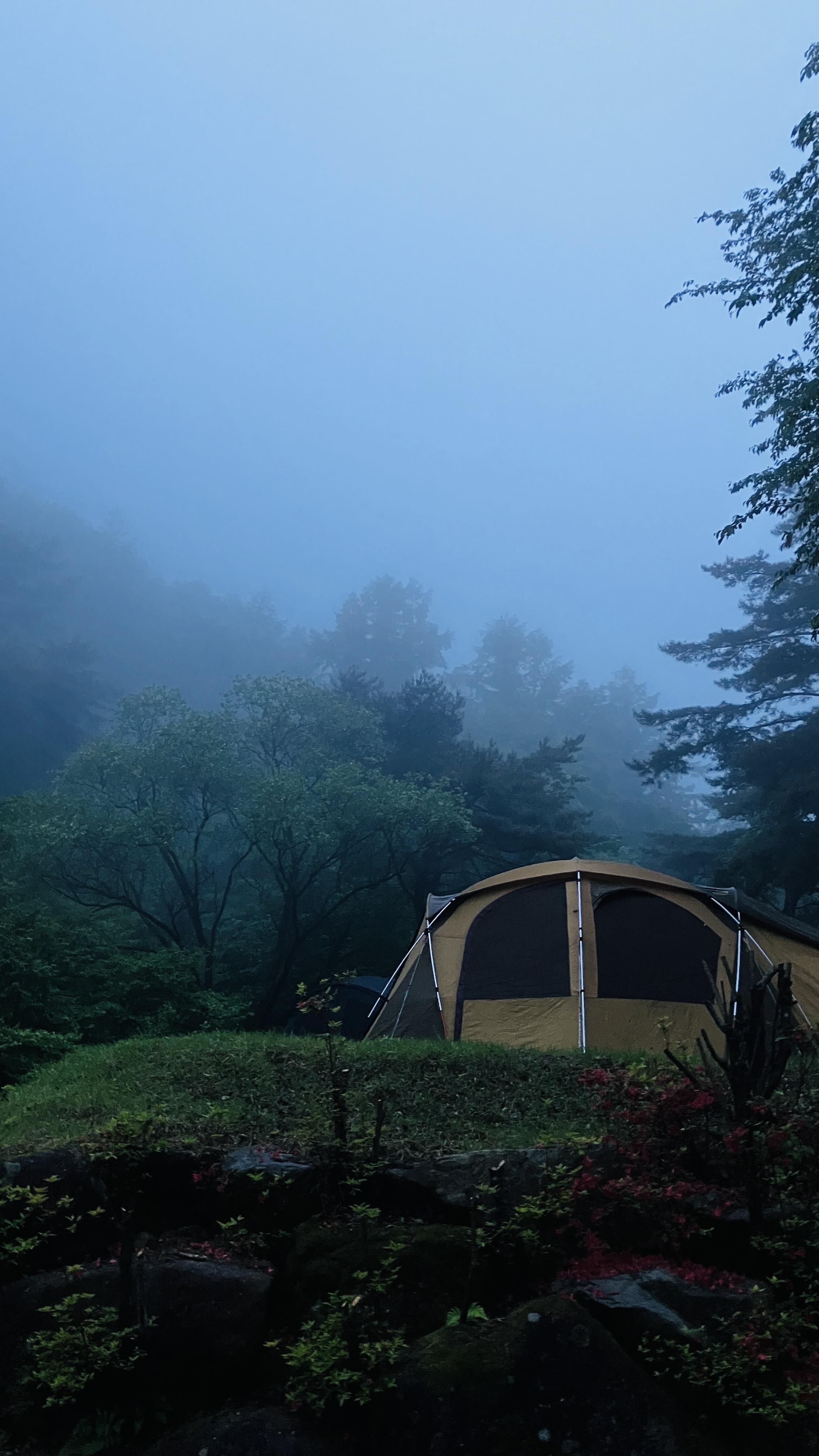 새벽부터 비바람이 멈추고 일출의 모습은 보기 어렵겠지만, 맑은공기와 안개가 자욱한 새벽공기 마시며 동고동락한 주변 캠퍼분들의 안녕을 살펴보았다. "다들 밤새 안녕하셨나요?"