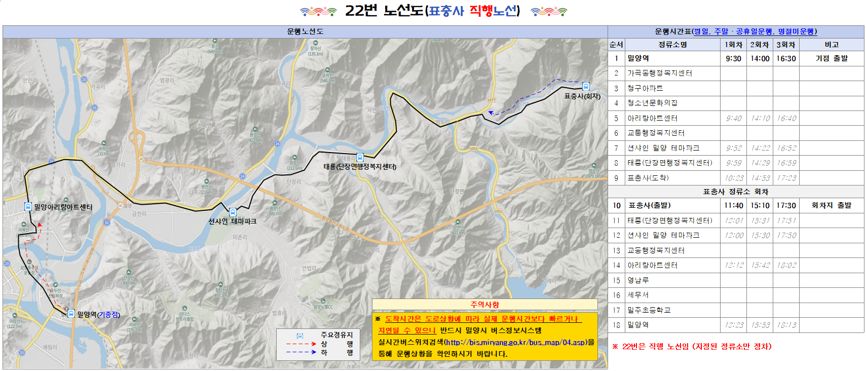 밀양시청 제공: 22번 밀양역-표충사 직행노선, 동지역 정차지 확대 운행 안내