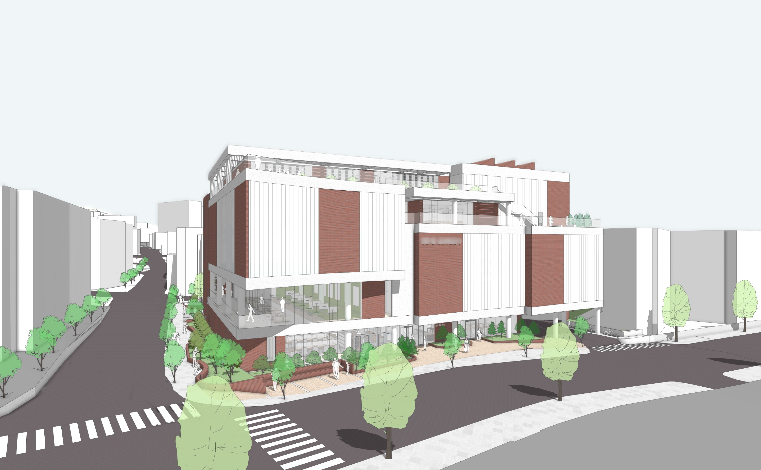 지역지구 / 제2종 일반주거지역 대지면적 / 2,800㎡ 용도 / 공공업무+운동 연면적 / 6,000㎡ 건축면적 / 1,500.0㎡ 규모 / 지하1층~지상5층 외부마감 / 치장벽돌(롱브릭), 로이복층유리, 유글라스