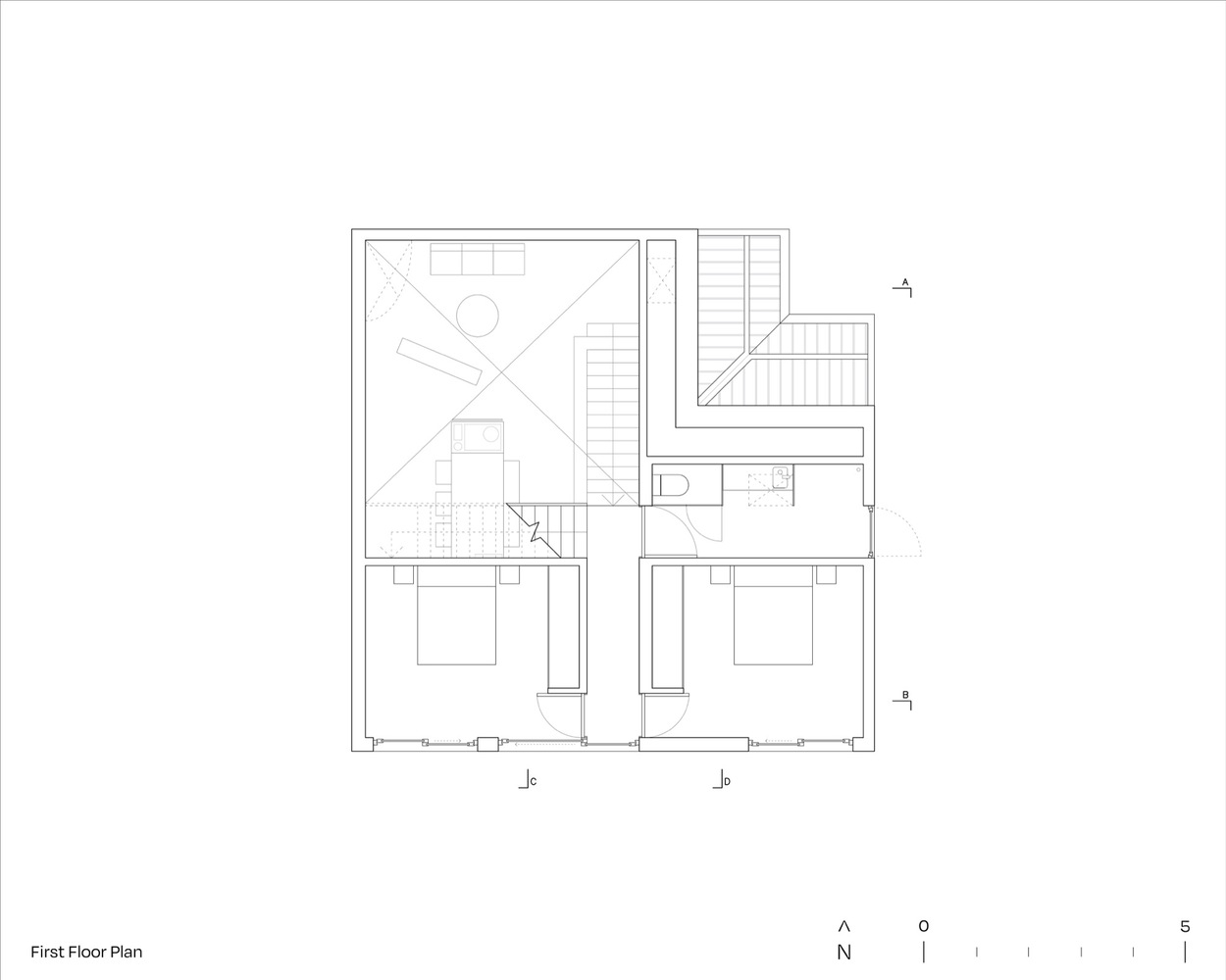 정육면체의 형태와 절반으로 잘린 비례구도는 건물의 평면과 단면과 입면과 형태의 정확한 질서를 부여하는 중요한 기준이 된다.