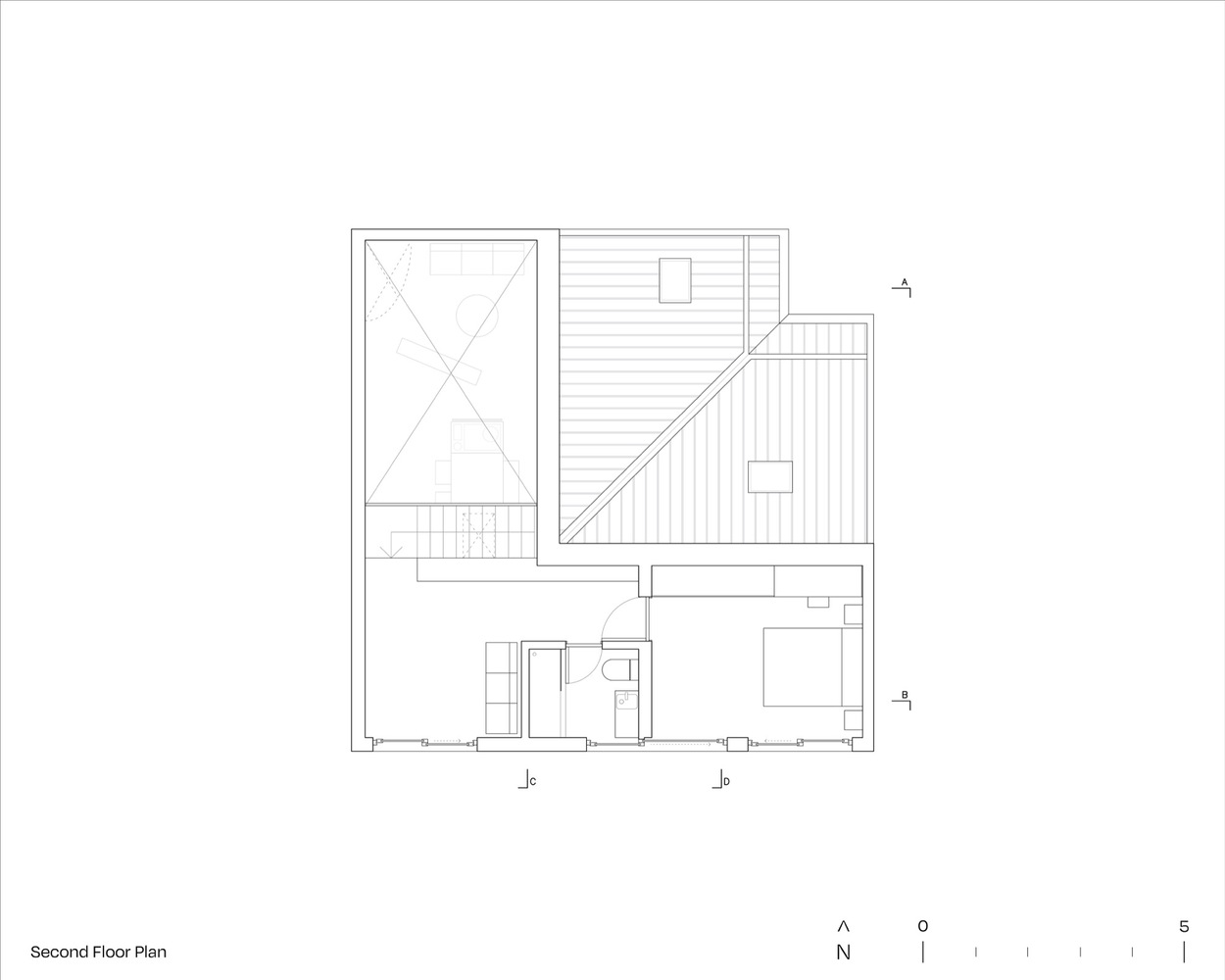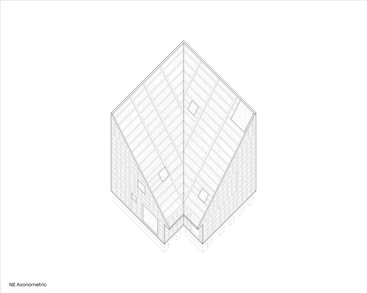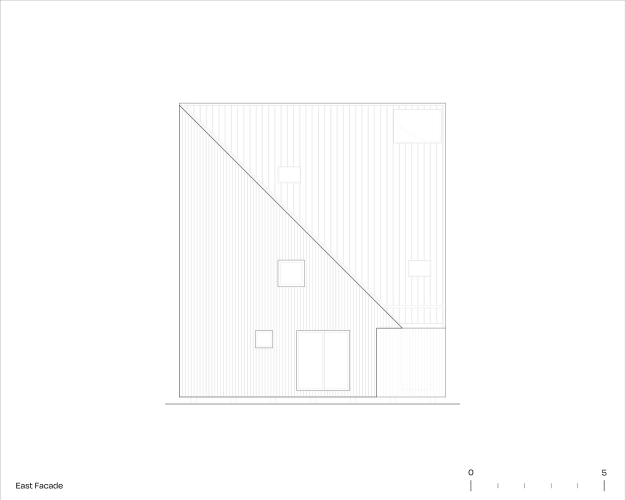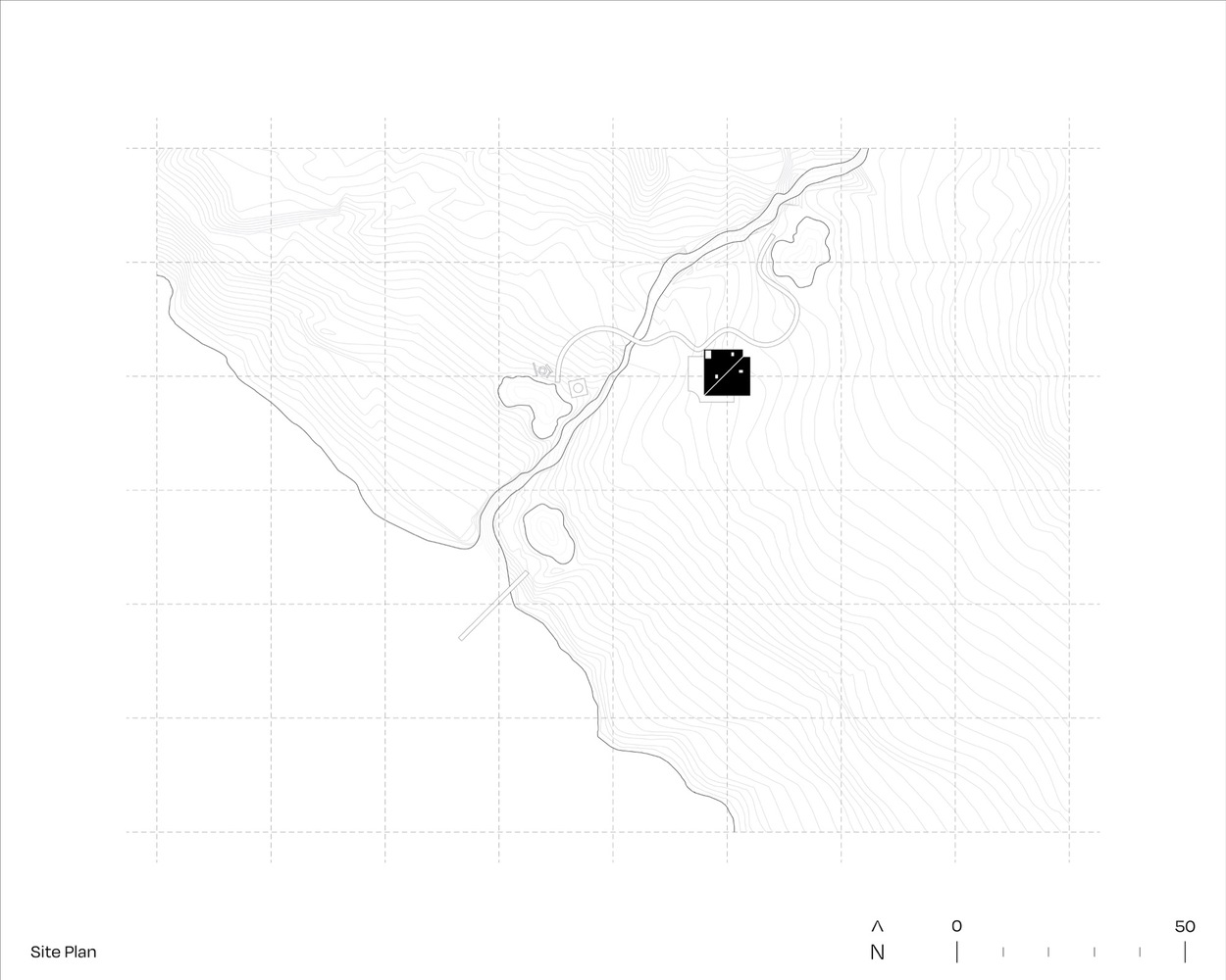 이 주택은 11m의 정육면체의 형태에서부터 시작한다. 정육면체 중에 두 면이 절반으로 갈리면서 호수를 바라보는 높은 면과 별장으로 진입하는 호수 반대편의 낮은 면으로 구분된다.