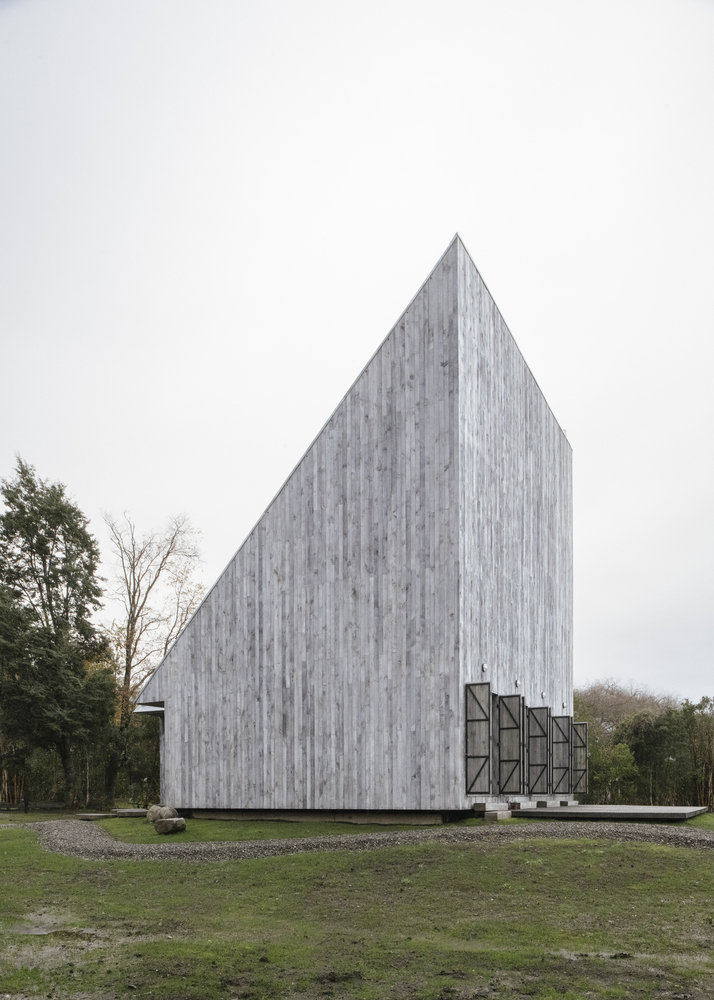 입구는 낮으며 철저히 숨겨져 있다. 공원 속에 조각물 같이 회색톤의 목재마감으로 되어 도심지에 있는 하얗고 절제된 모던한 건물과는 다르게 자연과 어우러진다.