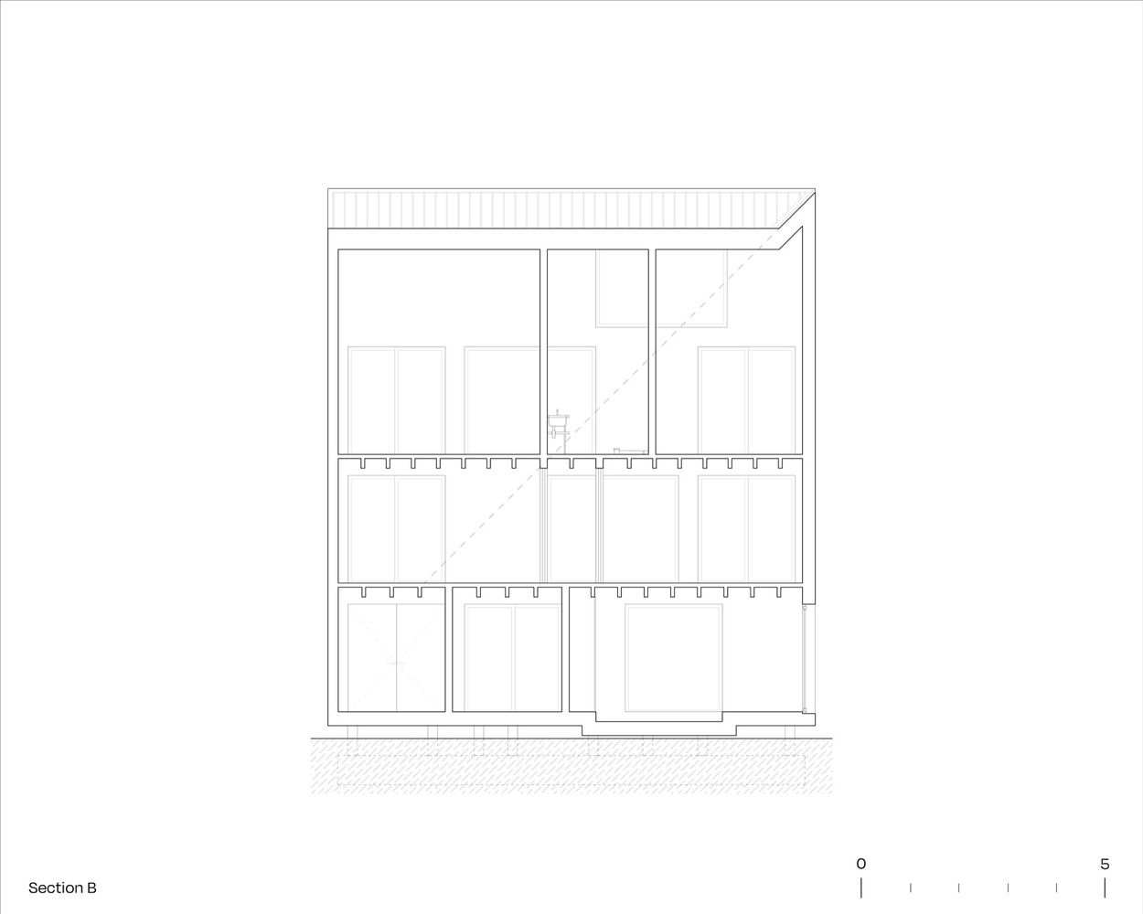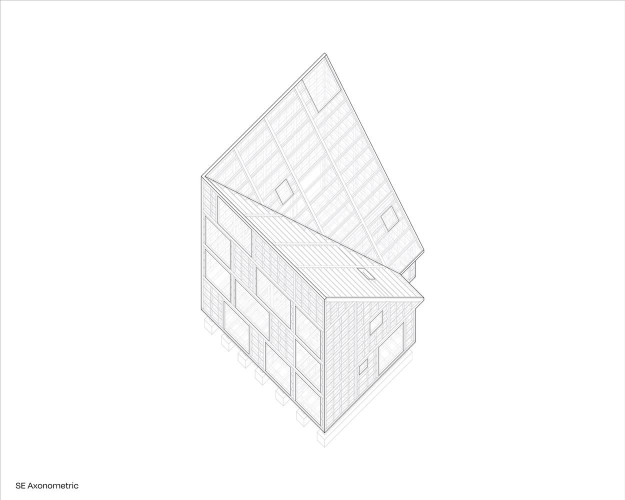 이 주택은 11m의 정육면체의 형태에서부터 시작한다. 정육면체 중에 두 면이 절반으로 갈리면서 호수를 바라보는 높은 면과 별장으로 진입하는 호수 반대편의 낮은 면으로 구분된다.