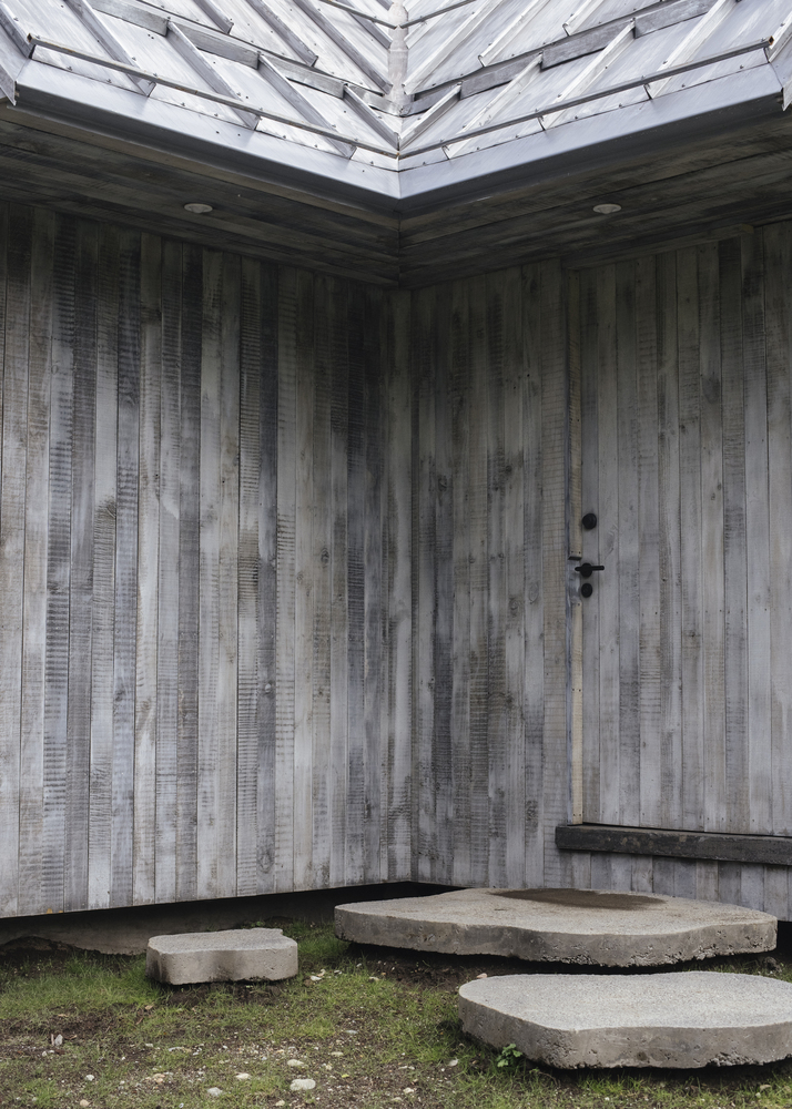 회색 목재마감은 내부와 외부를 모두 하나의 재료를 사용함으로 인해서 공간의 이동에 따른 연속성을 중요시하였다. 이 연속성은 별장을 사용하는 이용자에게는 보다 확장된 공간의 경험으로 풍부한 감각의 변화를 돕는다.