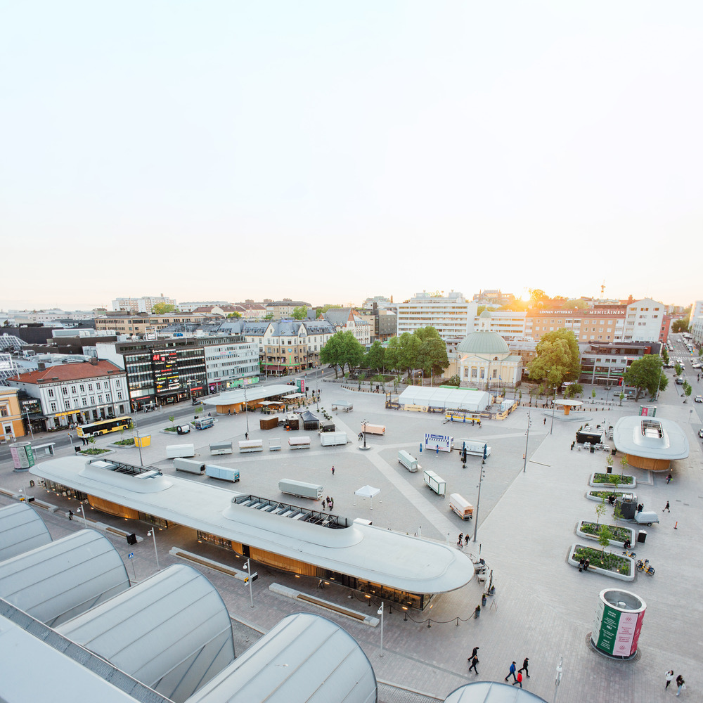 핀란드 투르쿠 시의 시장광장에 위치한 파빌리온이다. 심플하고 강력한 솔루션으로 공간을 메혹적으로 만든다. 작은 규모의 파빌리온이 시장광장의 가장자리에 위치하여 공간을 이어주고 중요한 역할을 한다. 캔틸리버 지붕구조의 캐노피는 실내와 실외 모두에서 매력적인 만남의 장소가 될 수 있다. 실내/외의 경계의 투명성을 강조하기 위해 프레임이 없는 유리시스템을 적용하였고, 이것은 공간의 경계를 흐리는 역할을 한다.
