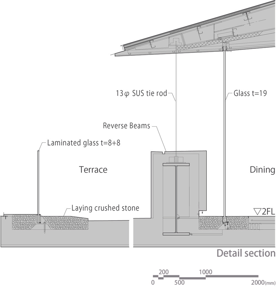 중력에 반하는 공간은 긴장감을 준다. 수평의 공간을 가장 길고 깊게 가져가며 , 수직의 선은 최대한 존재를 감추려고 한다. 최대한 얇은 부지로 수평과 대조를 이르며 전망을 극대화하고 있다. 이게 현실적으로 가능한가? 라는 의심이 드는 정도이다.