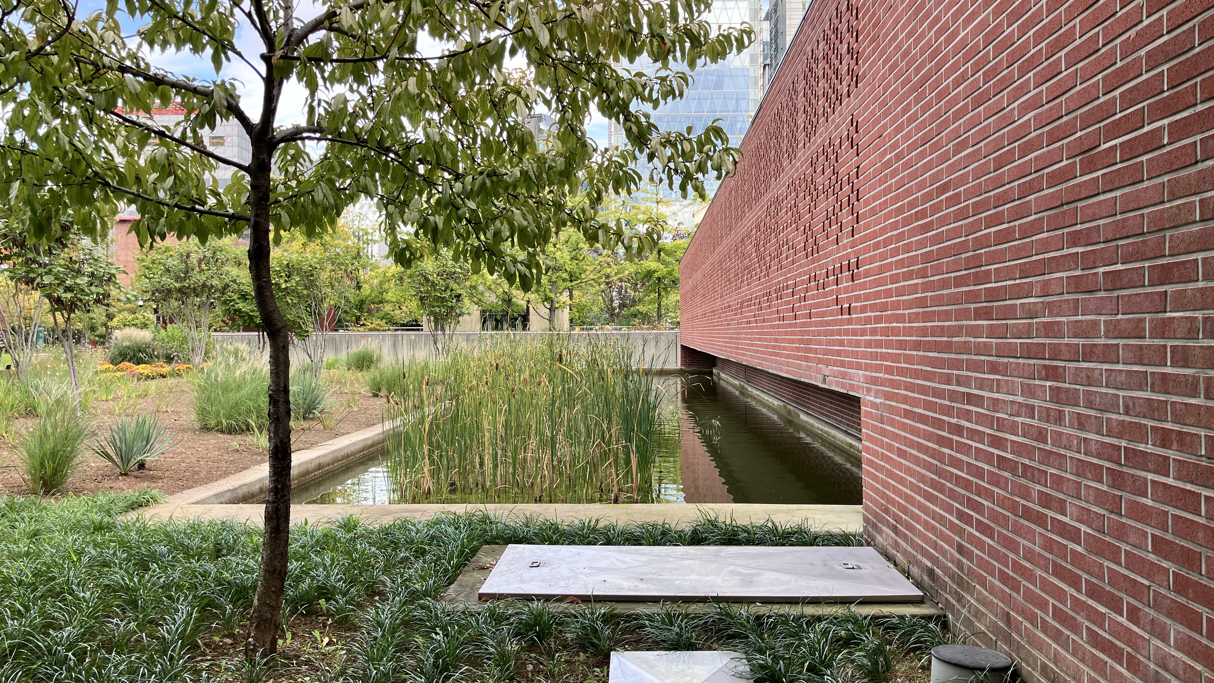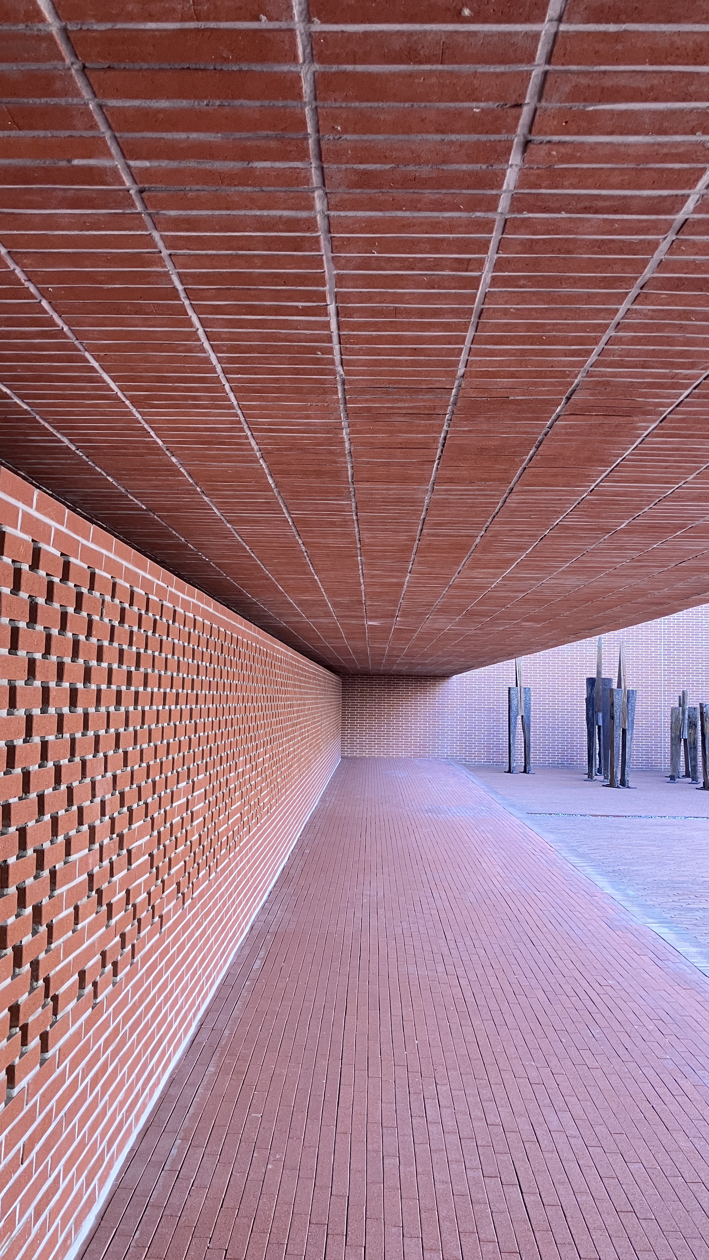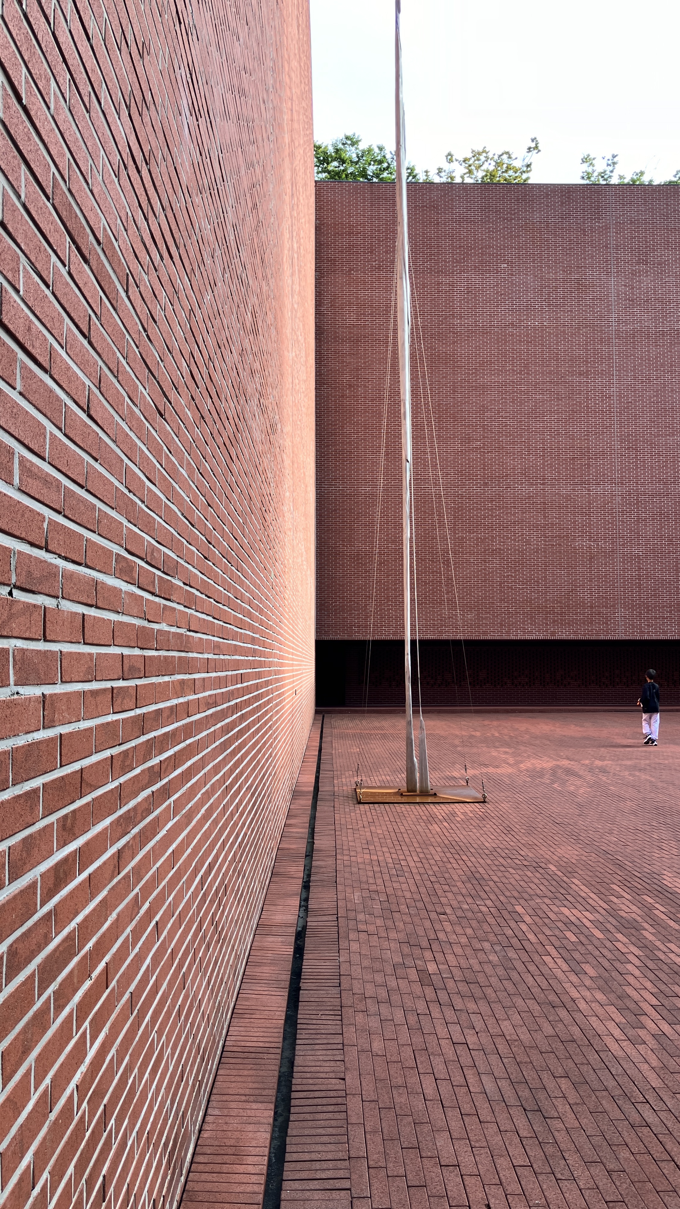 건물의 존재를 최대한 낮추고, 공원을 산책 하다보면 자연스럽게 방문하게 되는 곳이다. 외부에 접한 도로에서 건물의 로비로 진입하고 전시를 관람하는 일련의 과정에서 경계를 지우고 있는 느낌을 받았다. 그리고 그 경계는 계단과 같은 물리적 경계를 경사로로 처리하고, 외부에 사용된 재료를 내부의 주재료로 사용함으로 인해, 내외부의 경계를 지워 자연스럽고, 머물지 않는 연속성을 주고 있다.