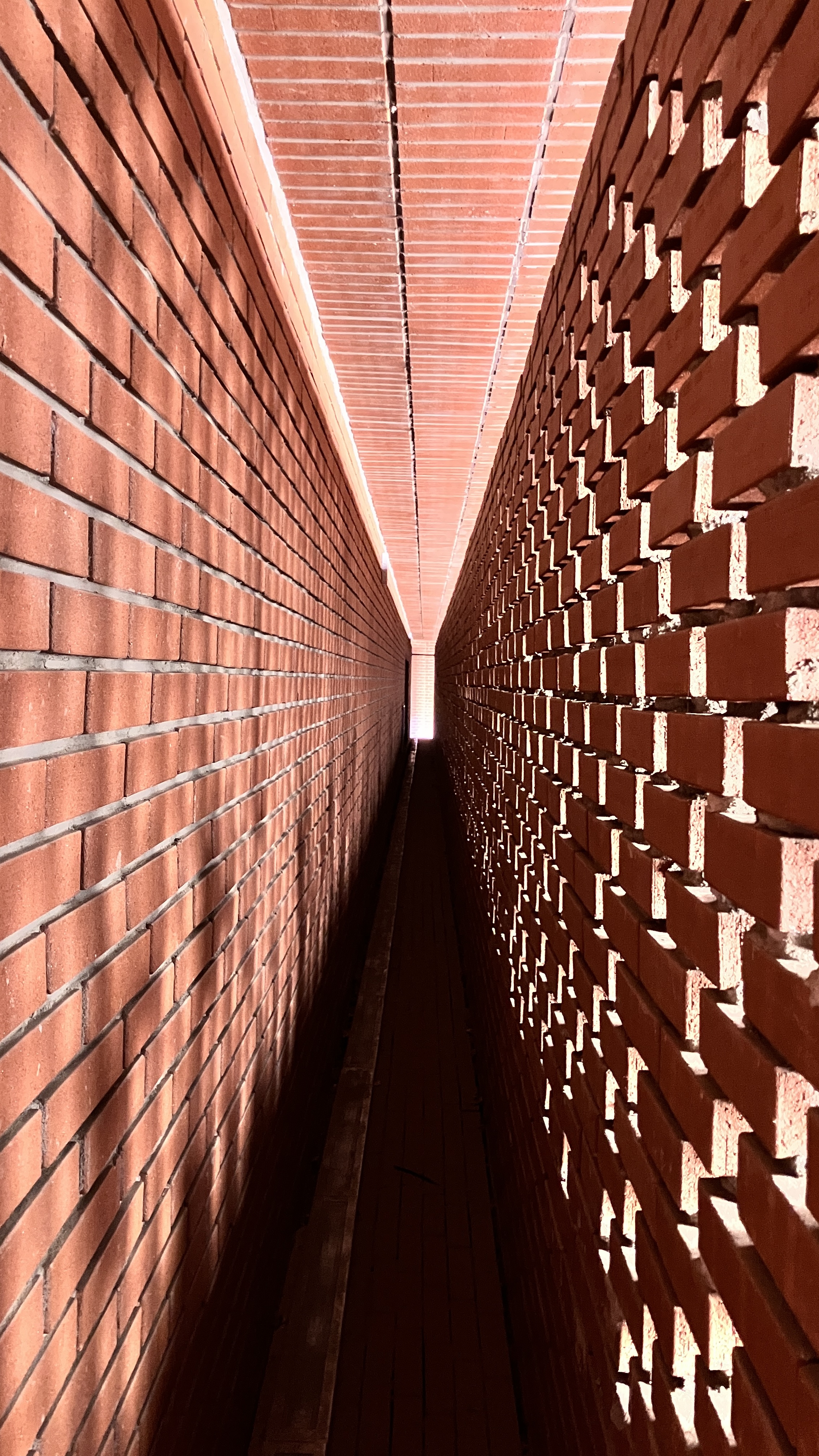 붉은 벽돌로 에워싸여진 빛우물과 같은 하늘과 교우하는 공간.