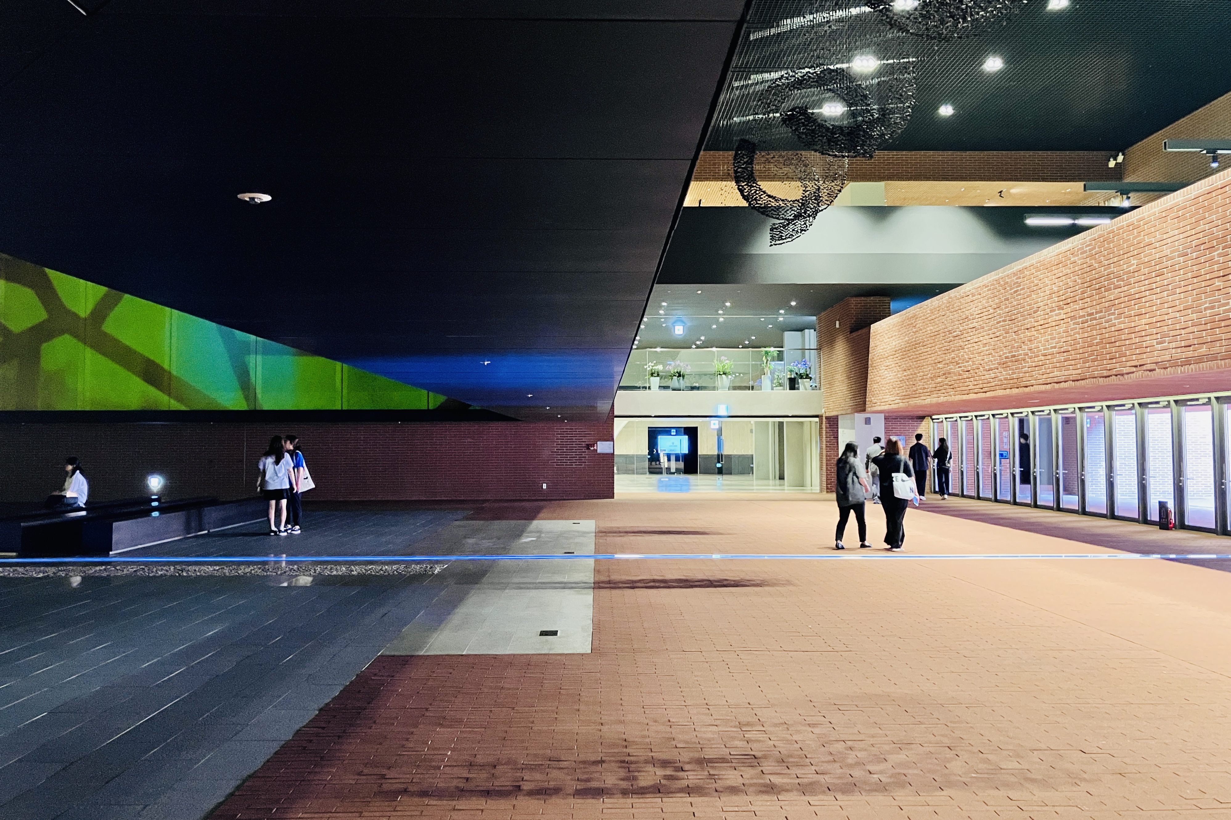 로비에서 지하2개층 정도를 내려가며 다층적 구조로 이루어진 연속된 공간이 끊임없이 전개된다. 한 개 층씩 단층구조의 공간구성이 아니라 지하공간의 높고 낮음이 다른 공간으로 이어짐을 시각적으로 볼 수 있다.