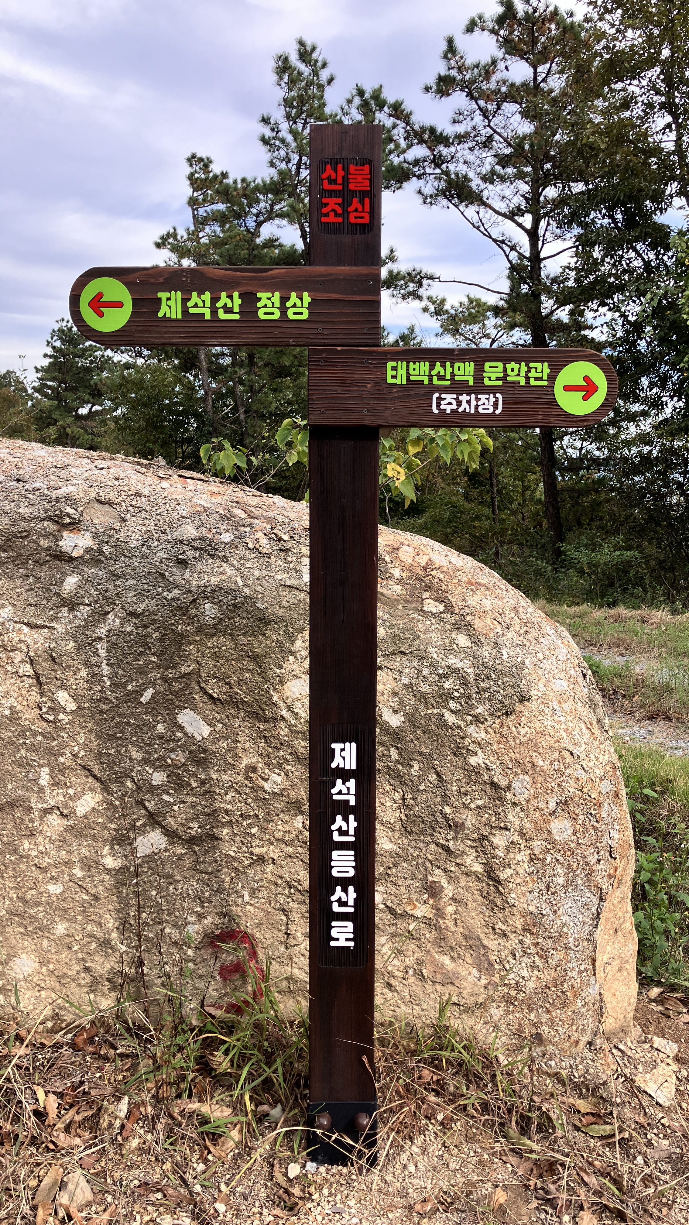 1시간이 지나면 해발고도 400m 지점에 이르르면 바위를 타고 급경사를 올라가야 한다. 등산은 힘들수록 기대된다. 이렇게 1시간 30분 가량 오르면 제석산(563.3m) 비석이 나온다. 별로 볼건없고, 그냥 지나쳐서 헬기장과 산불감시초소까지 가면, 터가 나온다.
