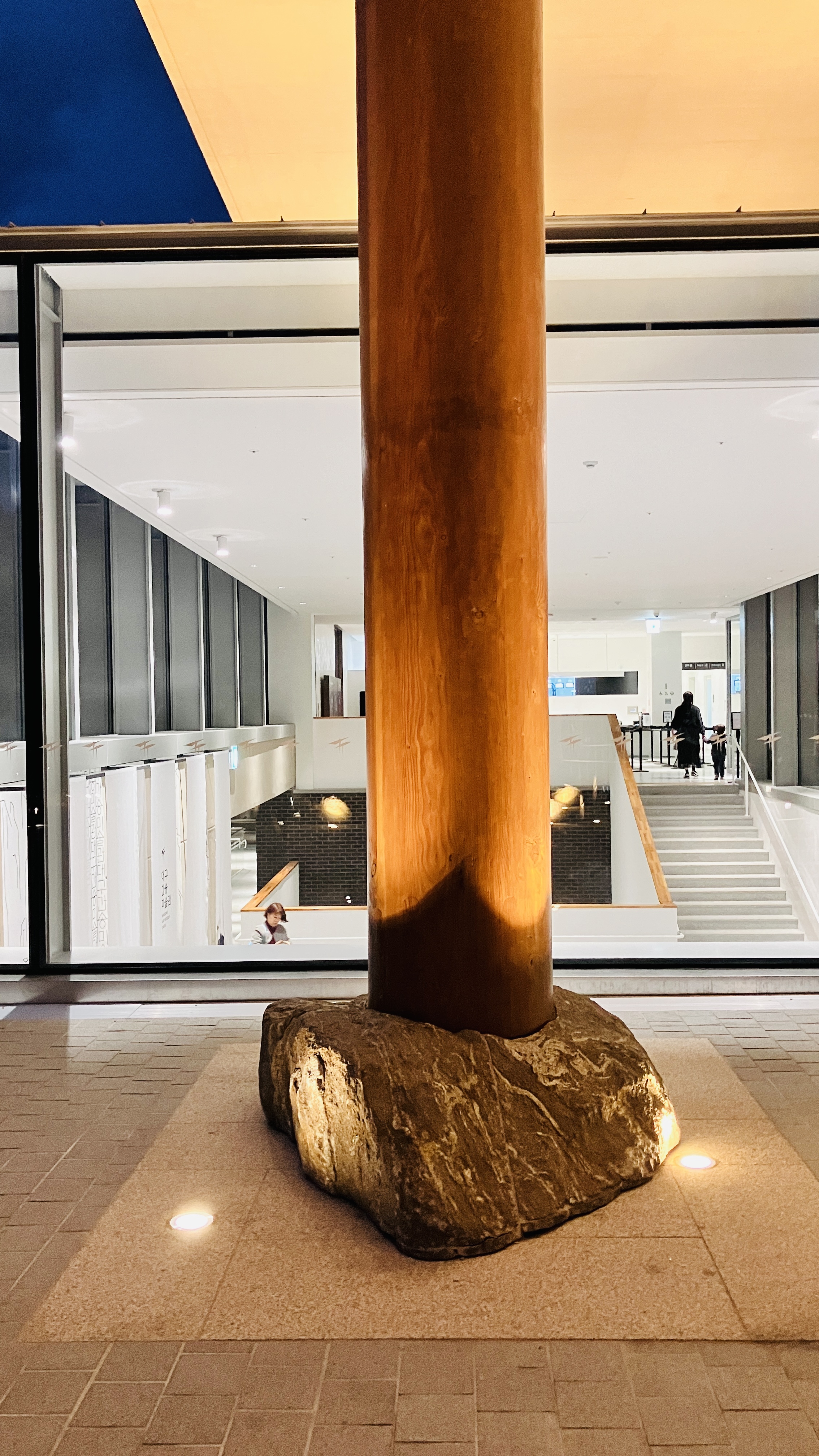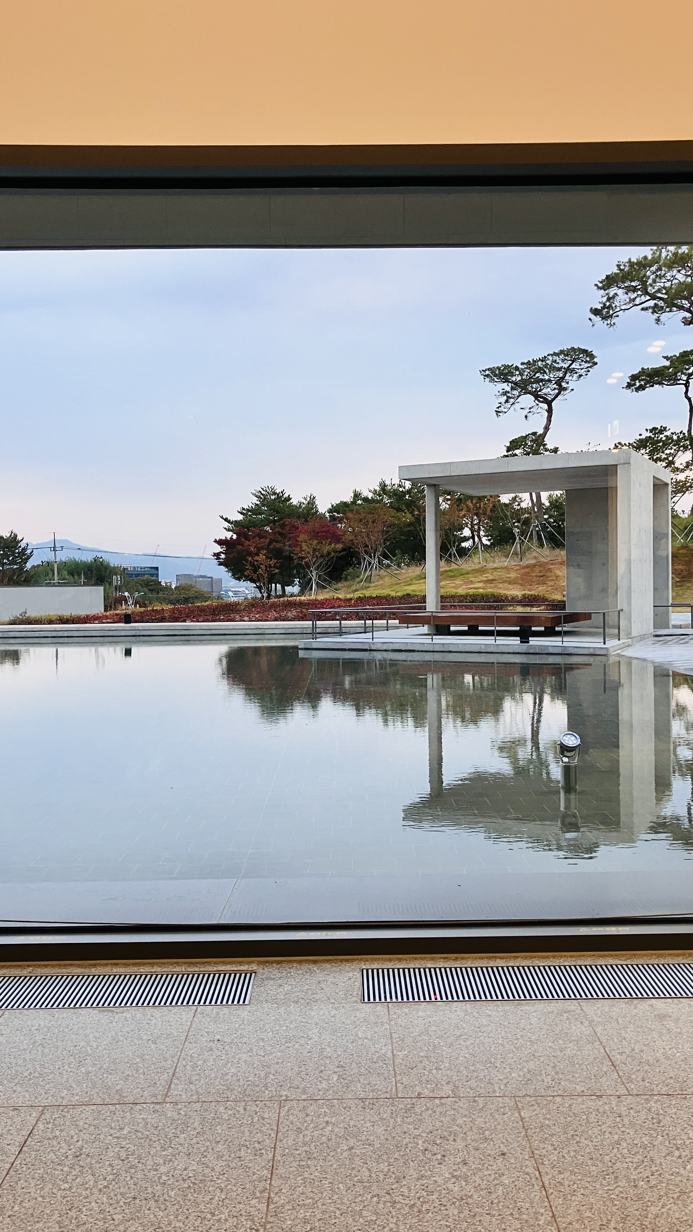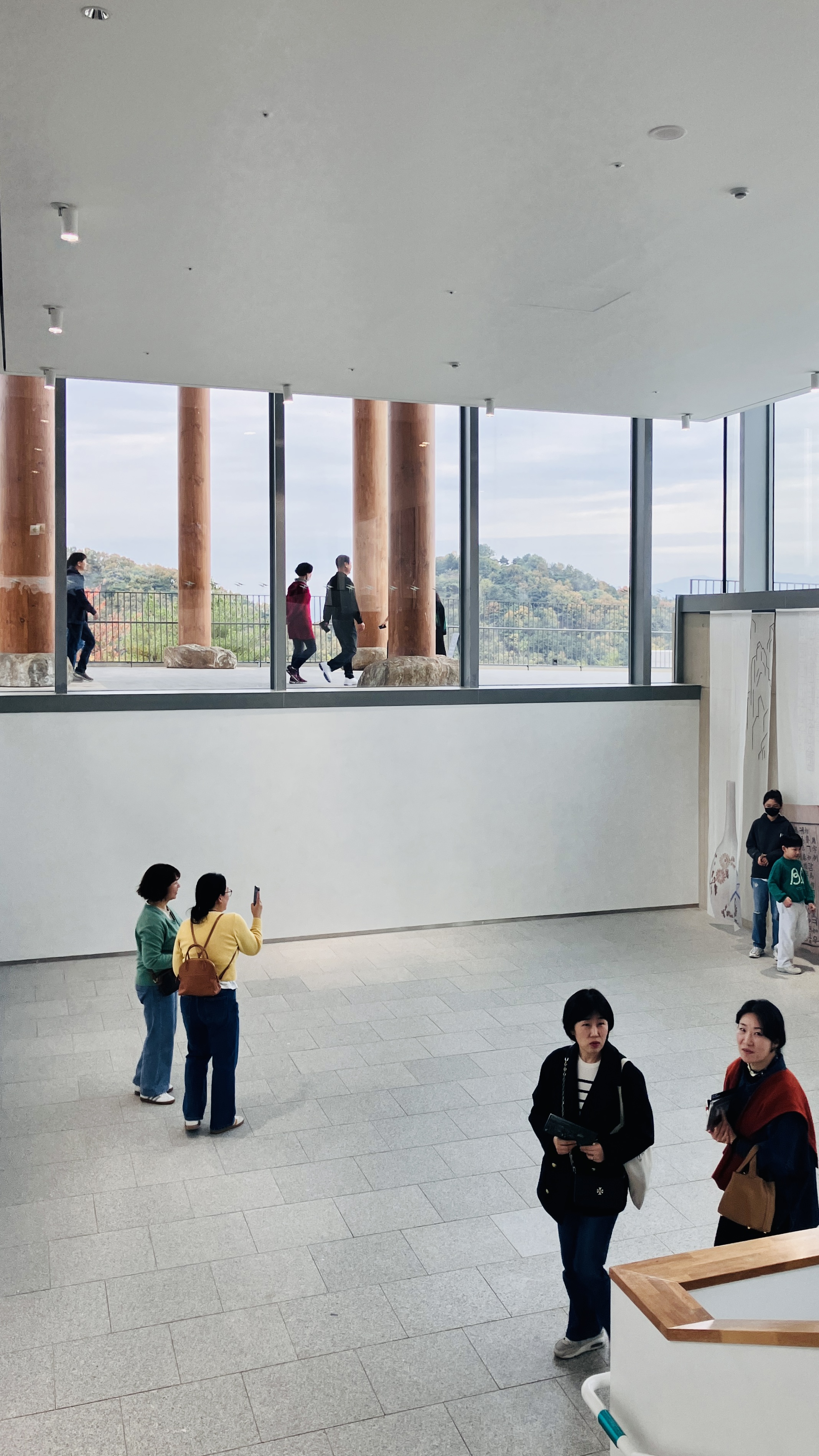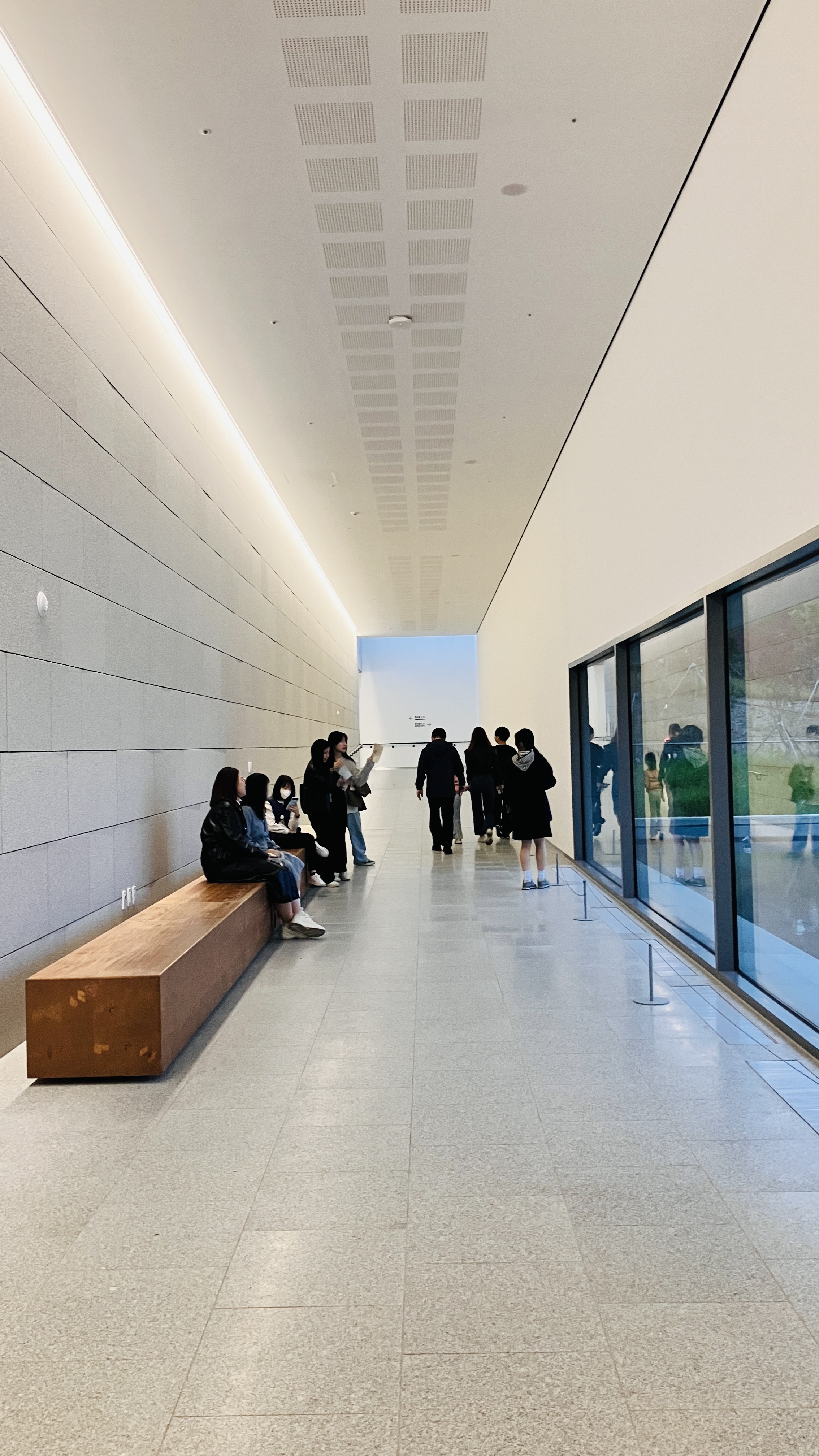 전시실-4,5에 도달하기 전 수공간과 주변을 전망하는 휴식공간이 마련되어 있다. 전시실-1,2,3에서 너무나 좋은 보물을 엄청난 집중력으로 관람을 했기에 휴식이 필요한 시점이다. 이 휴식공간은 복도에 의자를 두는 방식보다는 조금 더 수공간쪽으로 작은 공간(포켓공간) 이라도 만들어 두었으면 좋았을 것 같다. 복도를 지나치는 사람들과 쉬는 사람의 동선과 행동들이 섞여 혼잡하여 정적인 수공간의 전망과 어울리지 않아 다소 분위기가 산만하다.