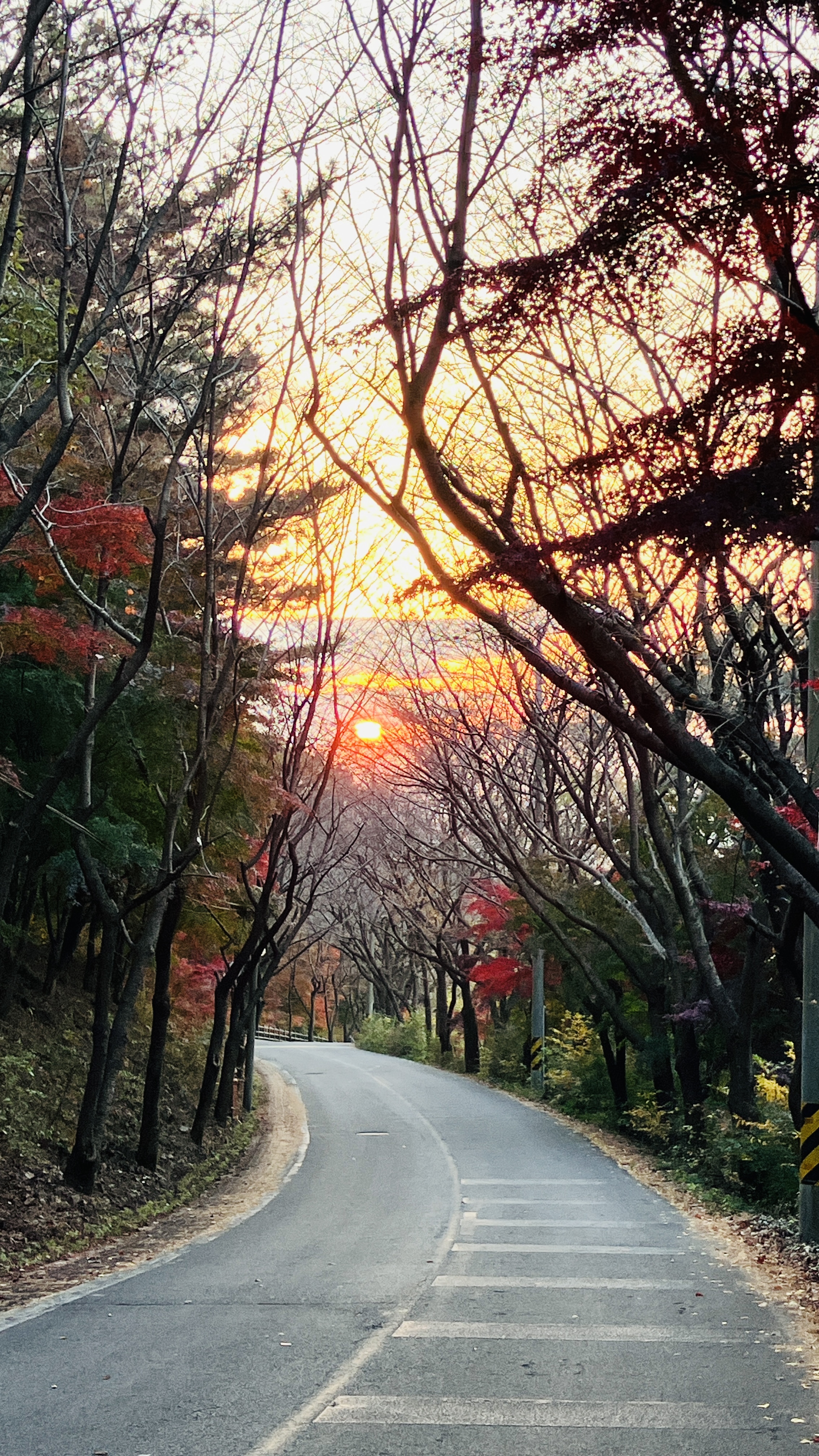 예상보다 빨리 정상에 도착해서 꽤 오랫동안 정상에 있었다. 일몰을 보려고 계속 기다렸는데, 시간이 더디게 가네. 일몰과 어우러진 억새가 어떤 모습일지 보고 싶었는데, 고민하다가 내려왔다. 내려오는 길이 일몰의 순간이 포착되었다. 아쉬움을 남기며 다음에 또 와야 하는 여운을 남기며, 하산한다.