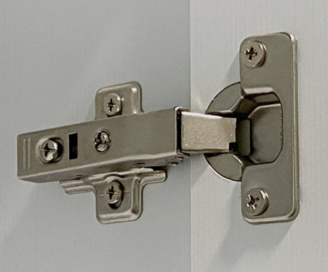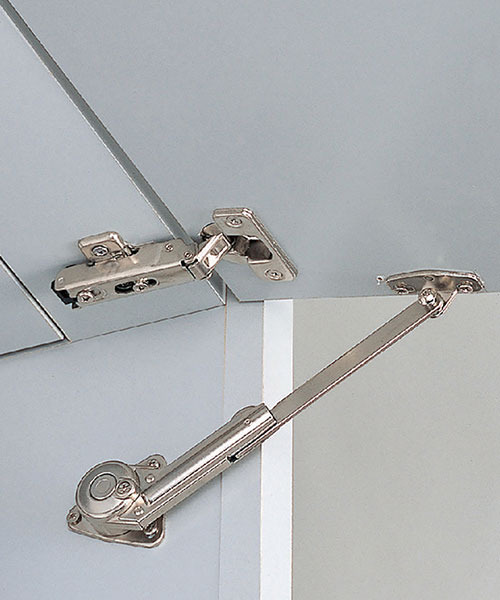 - 경첩은 도어의 회전축을 제공하는 부자재로, 각도 조절형, 댐퍼 내장형, 무타공형 등 다양한 옵션이 있으며, 블룸(BLUM)이나 헤티히(Hettich) 등 프리미엄 브랜드 제품이 고성능 제품군에 자주 쓰인다. 가장 많이 사용되는 경첩은 나비경첩은 문을 닫으면 밖에서 축이 보인다. 숨은경첩은 문짝 안쪽에 내장되어 밖에서 보이지 않는다. 숨은경첩은 주방가구 대부분에 쓰여 싱크대 경첩이라고도 불린다. 피봇경첩은 무게를 잘 견디는 곳에 사용된다. 요즘은 자동으로 닫히도록 댐퍼가 내장된 제품이 많다.