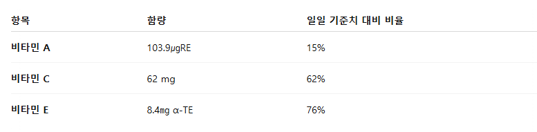 무방부제, 무색소라고 적혀 있다. 항산화 성분 (비타민 C, E, 안토시아닌) 풍부하고 비트, 당근은 혈압 조절과 해독 작용에 좋다. 비타민 A, C, E 가 무척많아 면역력과 피부건강에 좋은 것 같다.