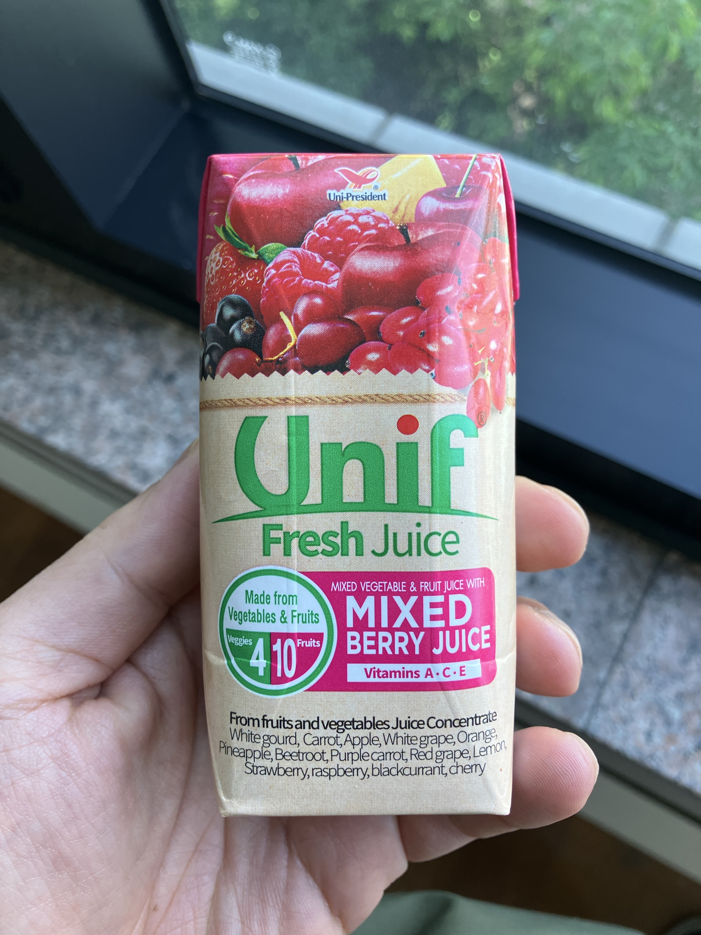 오늘은 Mixed Vegetable & Fruit Juice with Mixed Berry Juice 를 1+1에 샀다.