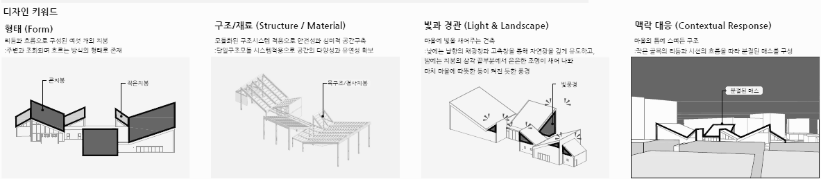 - 군민행복센터 후면에 위치하며 마을 속에 숨겨진 대지의 특징을 고려