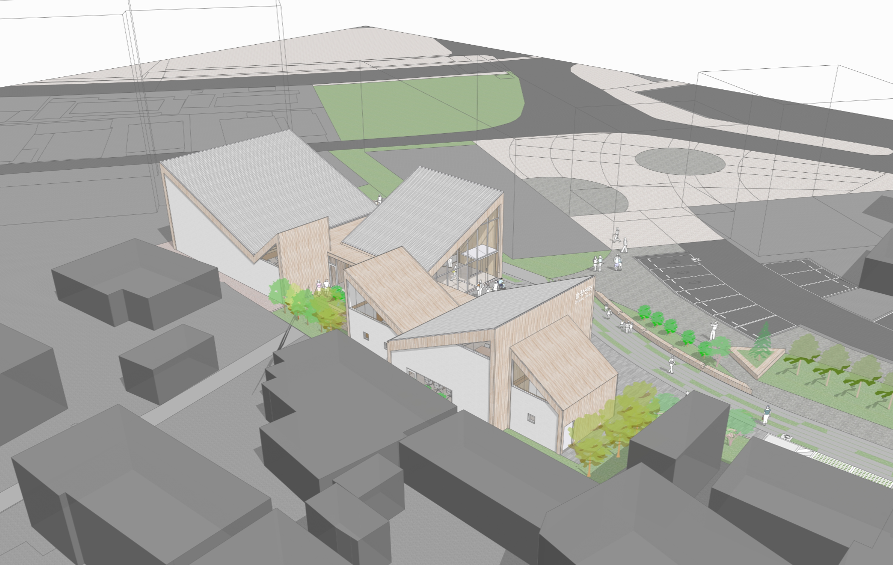 - 박공의 반복과 분절은 리듬감 있는 매스를 형성하며, 작은 지붕 아래엔 실용적 기능으로, 큰지붕 아래엔 주민의 활력과 축제가 펼쳐질 수 있는 열린공간.
