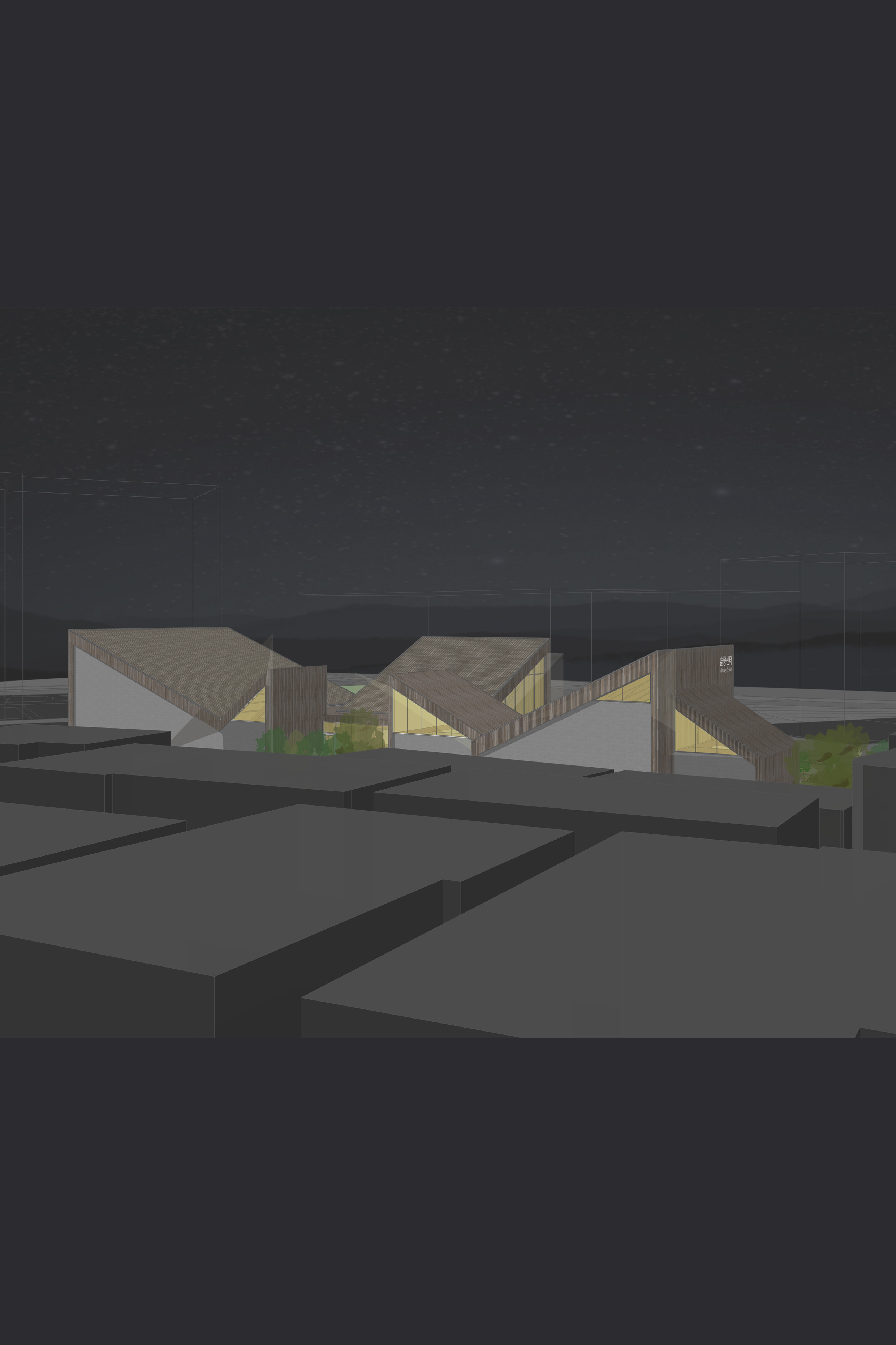 세 개의 큰 박공과 세 개의 작은 박공은 서로 다른 리듬으로 서 있으면서도 하나의 운율을 이루고, 그 아래에는 주민들이 모이고, 축제가 머물며, 일상이 스며듭니다.해가 지면 삼각 지붕 사이로 새어나오는 빛은 이 작은 건축이 전하는 따뜻한 인사 를 대신하며, 목재가 들려주는 시간의 흔적은 마을의 풍경에 천천히 스며듭니다.