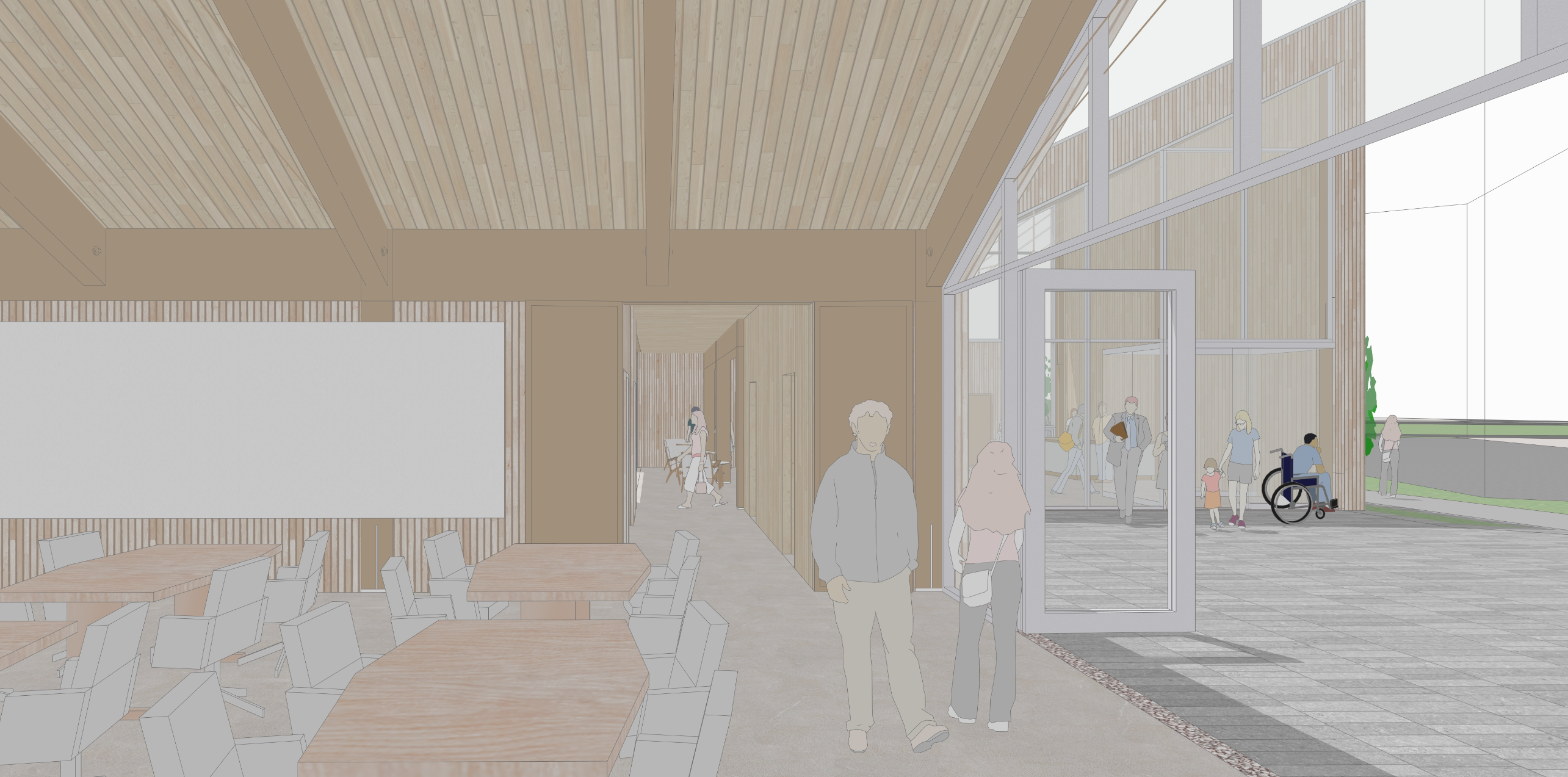 - 나무의 울림과 마을의 일상이 어우러지는 공간.