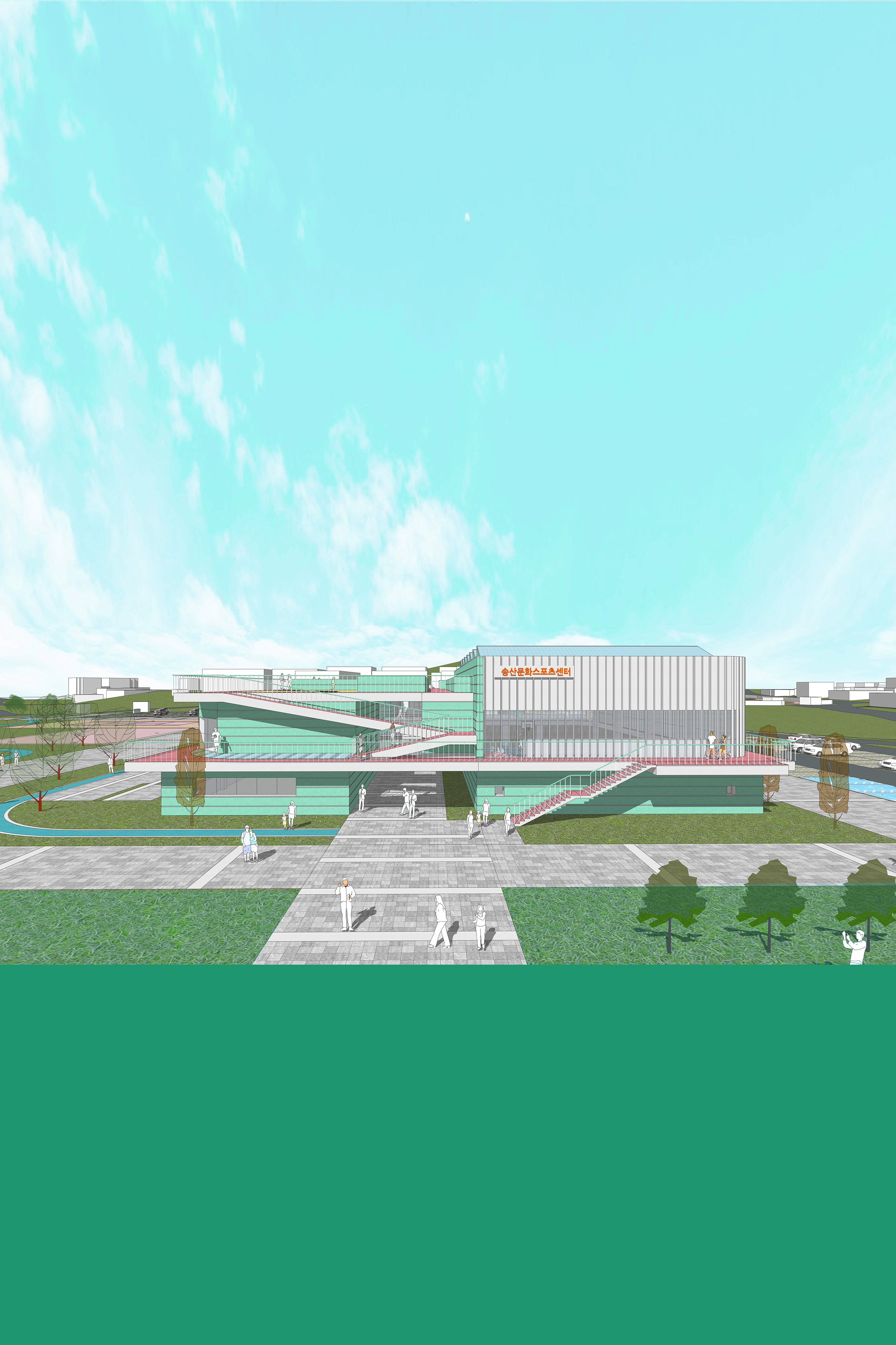 대지면적 / 18,037.00㎡ 용도 / 운동시설,노유자시설 연면적 / 2,300.0㎡ 건축면적 / 2,000.0㎡ 규모 / 지상2층 외부마감 / 알루미늄복합판넬, 폴리카보네이트, 루버형 금속판넬 주차대수 / 108대